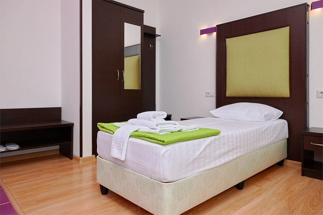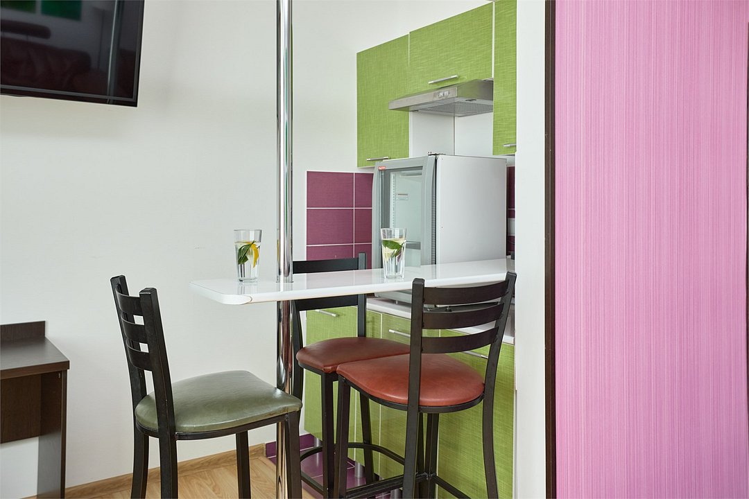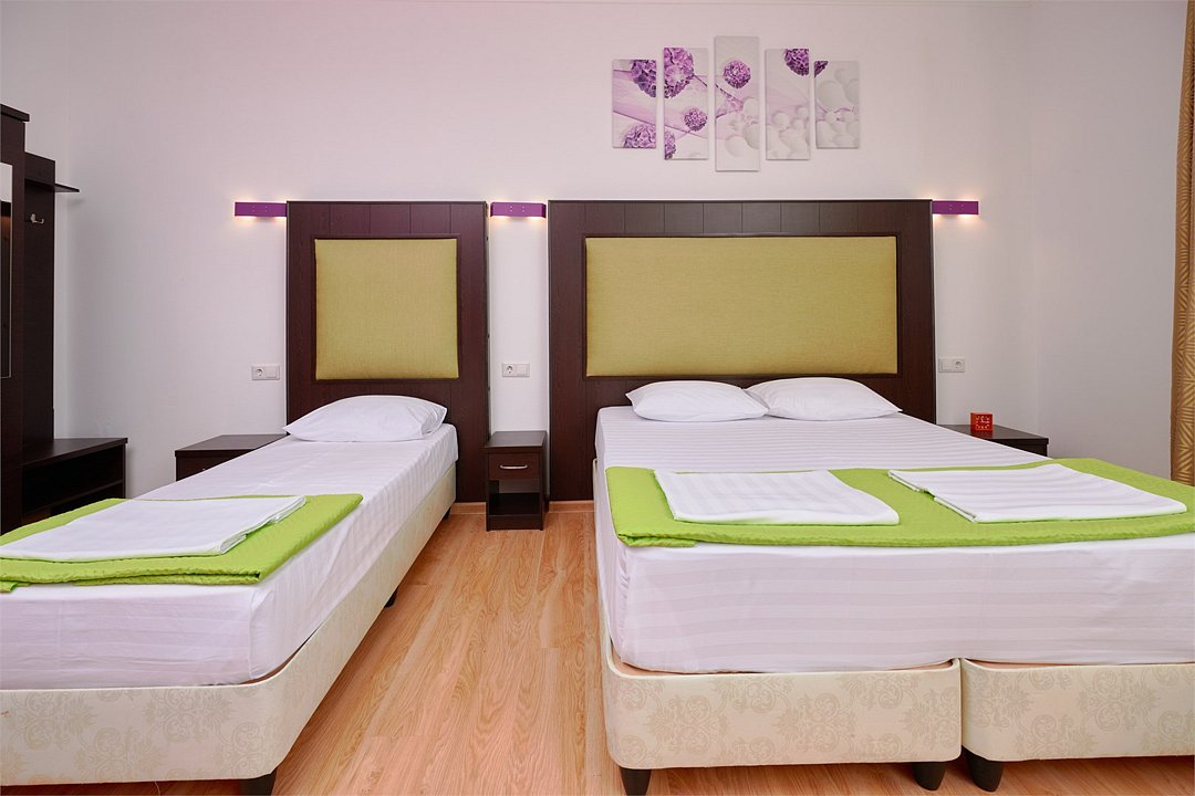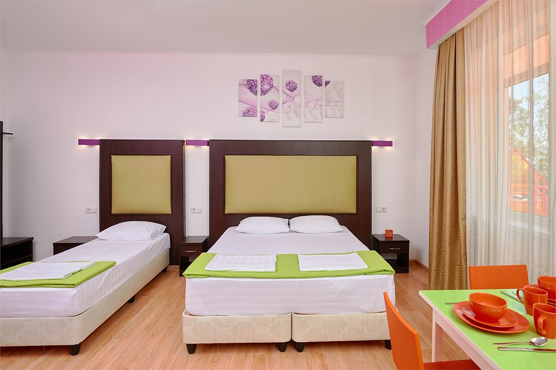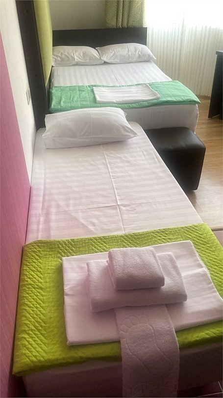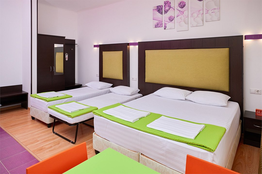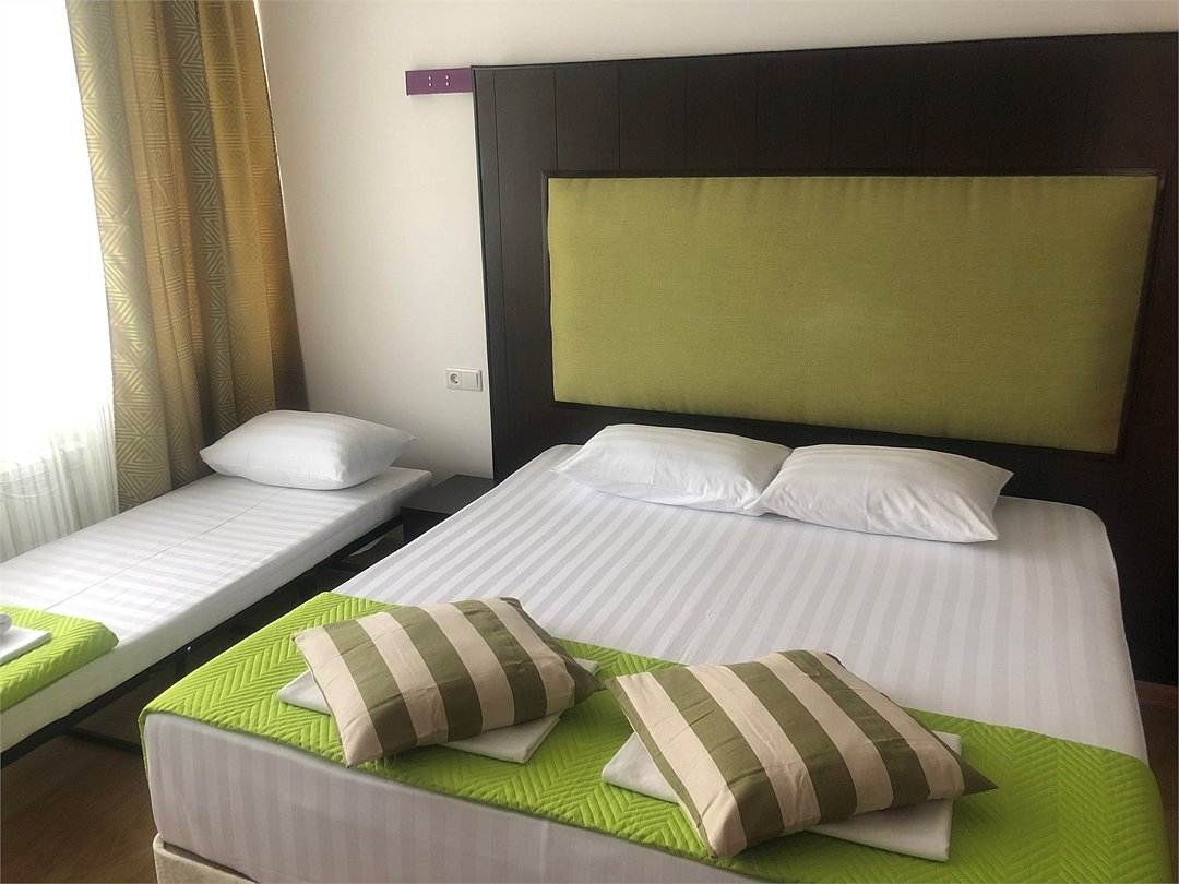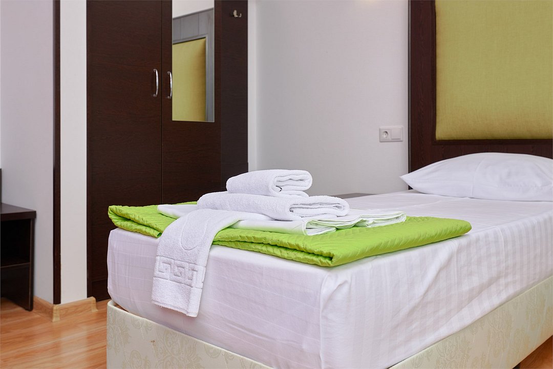 3-х местный номер Эконом без балкона подойдет для бюджетного размещения 3-4 человек оборудован кухонным уголком с обеденным столом, столовой посудой и эл.чайником. Для размещения 4го гостя в номере есть пуф, трансформирующийся в полноценную дополнительную кровать. Возможно размещение ребенка 3-6 лет на кровати с родителями или люля для ребенка 0-3 года.Услуги и удобства