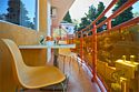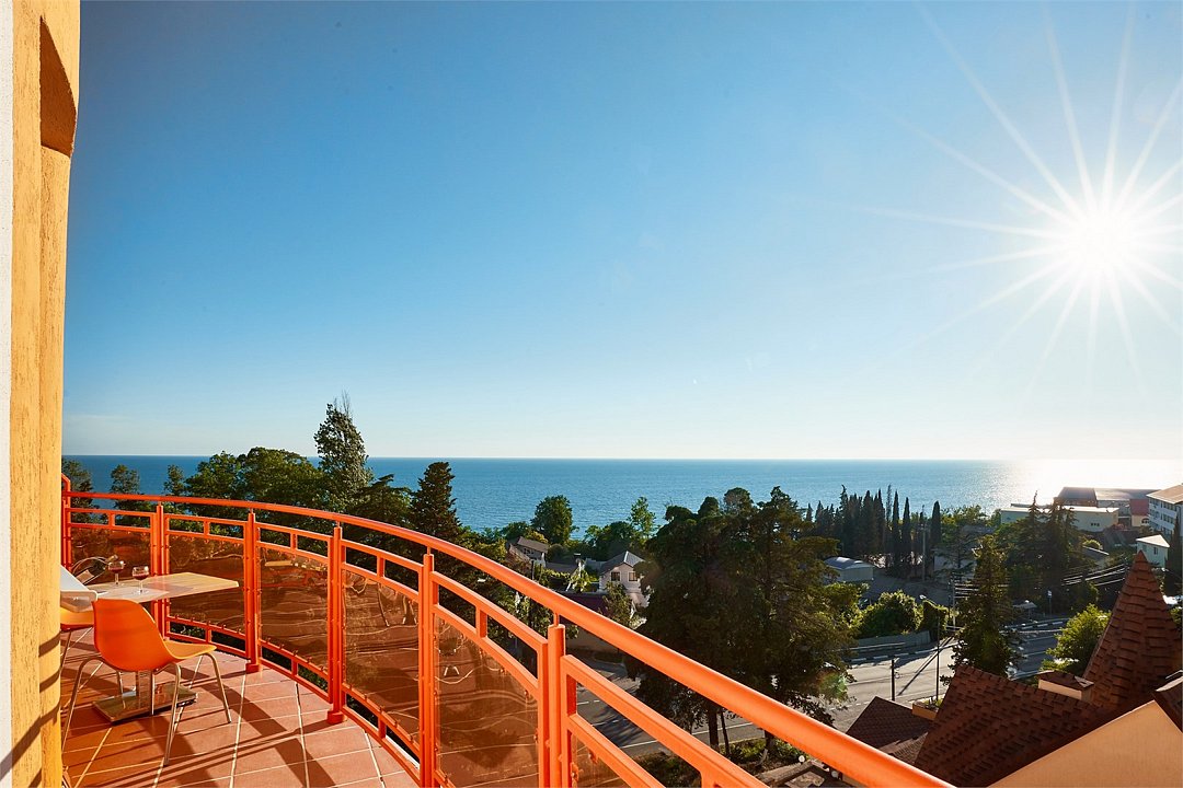 Одноместный номер Делюкс с балконом и видом на сад и горы имеет полутора спальную кровать 120см шириной на которой допускается размещение 1 взрослого гостя и ребенка до 6ти лет, детям до 3 лет может быть предоставлена кроватка-люля. За микроклимат в номере отвечает сплит-система, есть мини-холодильник, столовая посуда и столовые принадлежности. На балконе номера стоит садовая мебель.Услуги и удобства