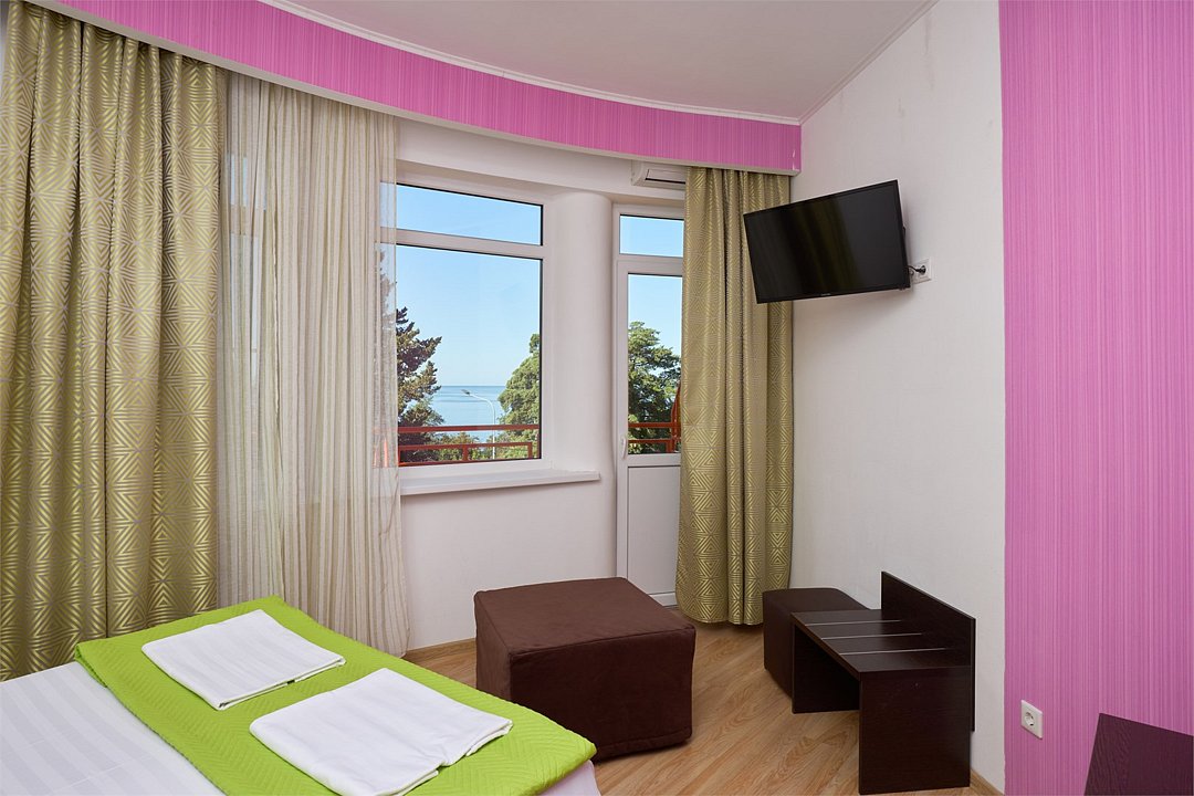 Стандартный 2х местный номер с одной двуспальной кроватью или 2мя раздельными кроватями из окон которого открывается вид на береговую линию моря, а в вечернее время можно любоваться картиной солнечного заката в морской горизонт сидя на балконе номера. Номер подходит для размещения 2 гостей. В номере есть столовая посуда и столовые приборы, прохладу в нем обеспечивает сплит-система, окна оснащены москитными сетками. Возможно размещение ребенка 3-6 лет на кровати с родителями или люля для ребенка 0-3 года.Услуги и удобства