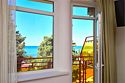 Wi-Fi, светильник, фен, будильник, электронные замки, душевая кабина, банные полотенца, пляжные полотенца, тапочки, гигиенические средства, косметические средства, балкон, две односпальные или большая двуспальная кровать, шкаф для одежды, вешалки, багажная тумба, зеркало, комод, набор посуды, обслуживание номеров, чайник, унитаз, раковина, отопление, душ, вид на море, ламинат, стаканы, столовые приборы, стол, тумба, туалетные средства, туалет, сплит-система, сушилка для белья, внутренний телефон, телевизор с плоским экраном, мини-холодильник, мини-кухня, москитная сетка, пуфик, балкон с боковым видом на мореВ номере