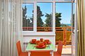 Wi-Fi, фен, будильник, электронные замки, ванная комната, санузел, пляжные полотенца, тапочки, гигиенические средства, косметические средства, балкон, полутораспальная кровать, тумбы, стулья, шкаф для одежды, вешалки, письменный стол, багажная тумба, зеркало, набор посуды, обслуживание номеров, чайник, унитаз, раковина, отопление, душ, вид на сад, ламинат, кухонная посуда, стаканы, кухонная утварь, столовые приборы, стул, туалетные средства, туалет, сплит-система, внутренний телефон, телевизор с плоским экраном, мини-холодильник, мини-кухня, москитная сетка, вид на горы, частичный вид на море, рабочий столВ номере