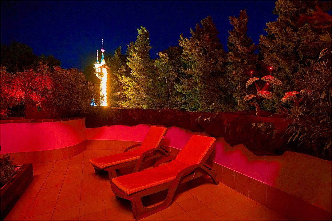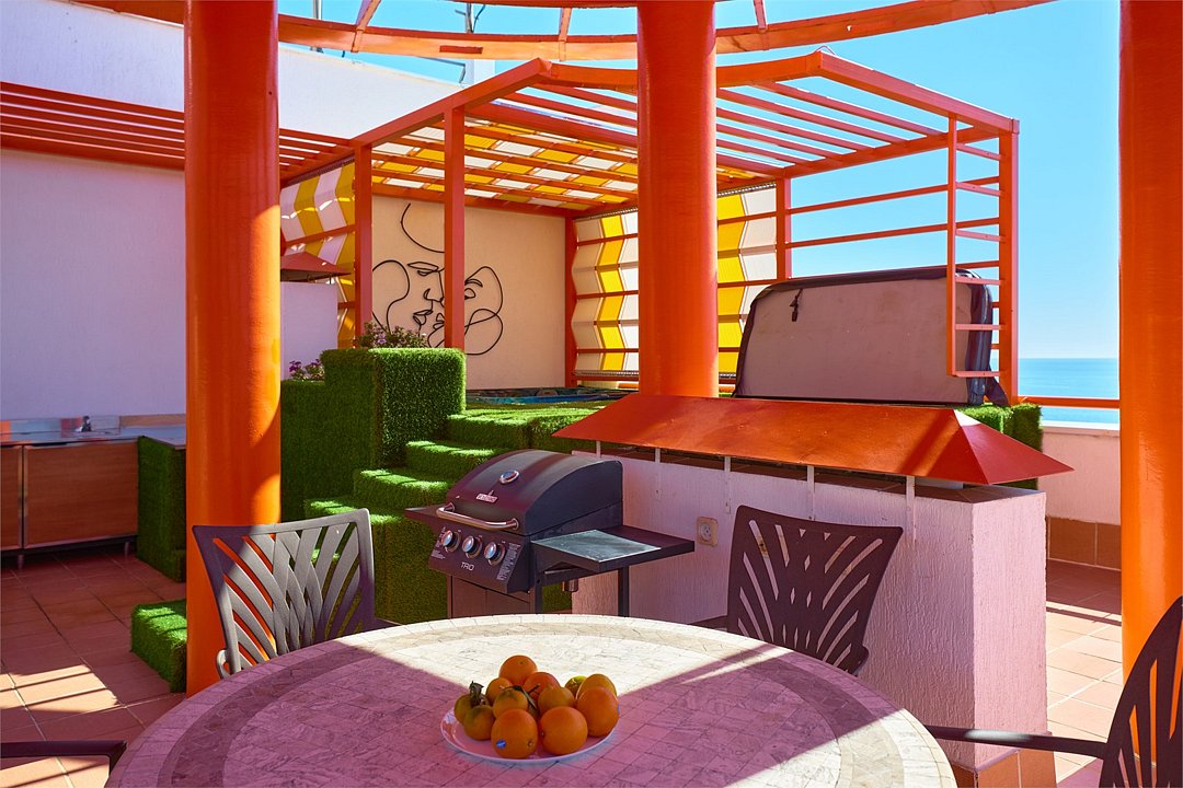 Пентхаус с террасой на крыше отеля с шезлонгами , 6-ти местной джакузи и зоной для пикника с набором мебели и газовым грилем. В обоих спальнях есть большие телевизоры с плоским экраном и доступом в интернет, кровать KingSize в одной спальне и раскладывающийся угловой диван во второй. Гостиная оборудована кухней с варочной поверхностью, вытяжкой и потолочным вентилятором, а так же сплит-системой, холодильником и телевизором. Гостям доступна премиум линейка отельной парфюмерии, банные халаты. дополнительно в номере можно разместить еще 3х гостей, для отдыха им имеются пуф, раскладывающиеся в полноценную кровать, кресло-кровать, еврораскладушка. Возможно размещение ребенка 3-6 лет на кровати с родителями или люля для ребенка 0-3 года.Услуги и удобства
