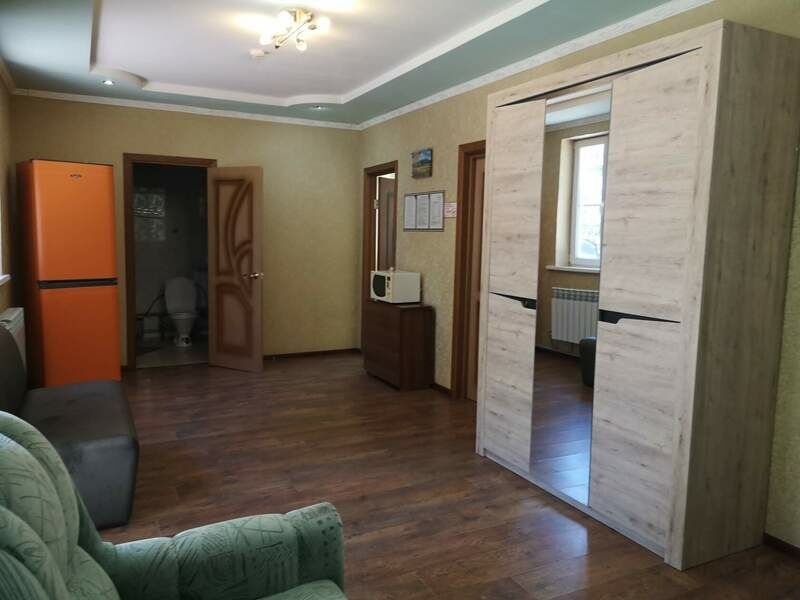 Номер включает в себя общий коридор с холодильником, две комнаты на две семьи из 3-х человек, со столом и плазменным TV с цифровым телевидением, а также санузел с душевой кабиной.