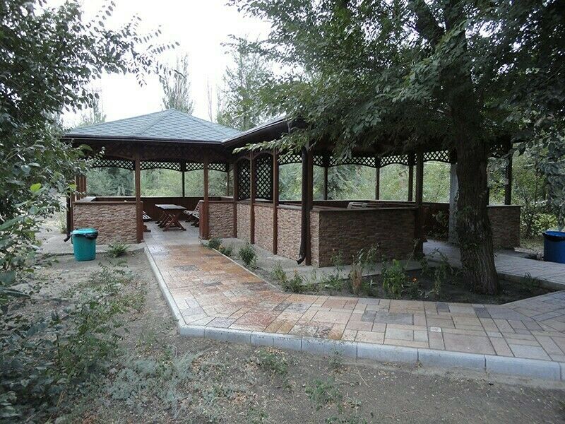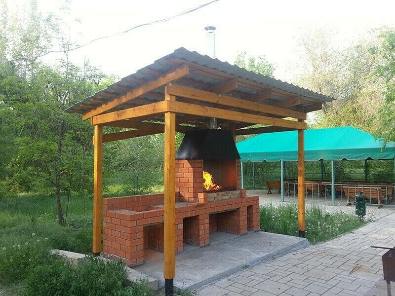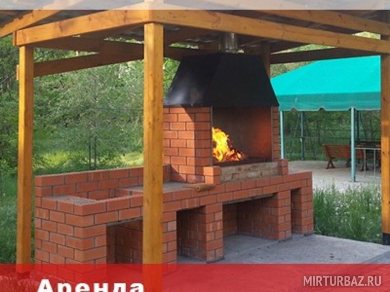 На открытой веранде находятся столы, скамейки для размещения до 50 человек.
