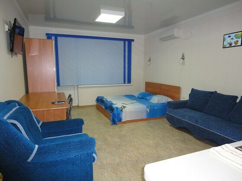 Всего 4 больших номера. В каждом номере двуспальная кровать или две односпальных, диван кровать и кресло кровать.