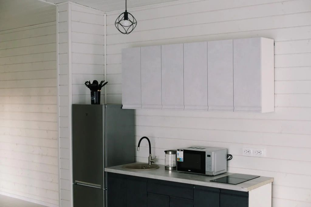 - полностью оборудованная кухня с посудой и техникой (плита, микроволновка, холодильник, чайник);