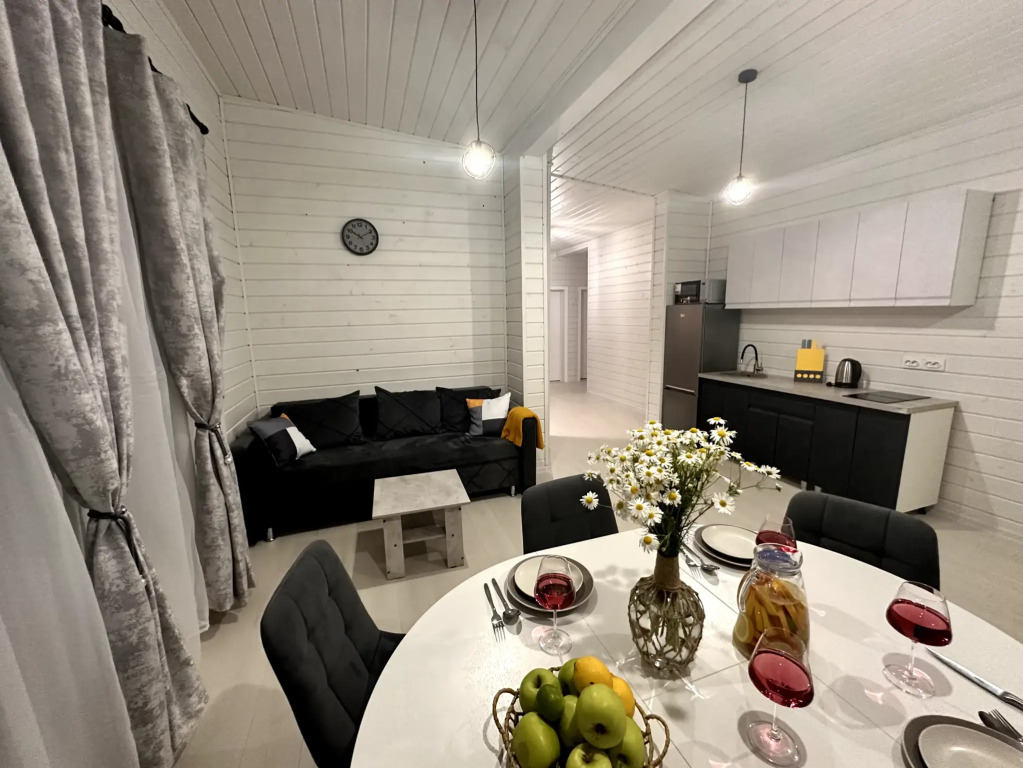 Просторный и светлый дом расположен в коттеджном посёлке рядом с Истринским водохранилищем и живописным лесом. Это идеальное место для отдыха или уединённого проживания в любое время года. Дом рассчитан на комфортное размещение до восьми гостей и включает три спальни, финскую сауну, просторную гостиную, объединённую с кухней, и уютную террасу.