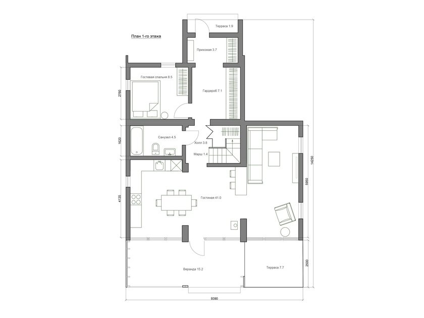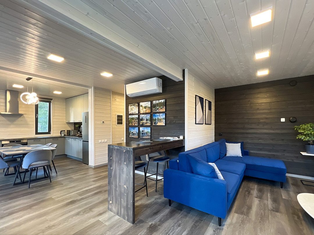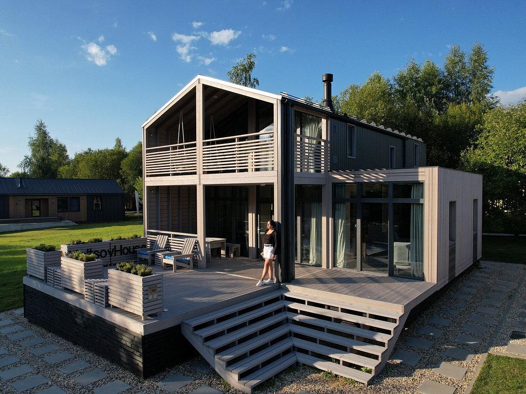 «Опен Большой» — это элегантный двухэтажный дом, созданный для тех, кто стремится к комфортному и качественному отдыху вдали от городской суеты. В доме могут с удобством разместиться до восьми человек, и здесь предусмотрено все для приятного времяпровождения с семьей или друзьями. Интерьер каждого помещения тщательно продуман, гармонично сочетая простор, стиль и функциональность.