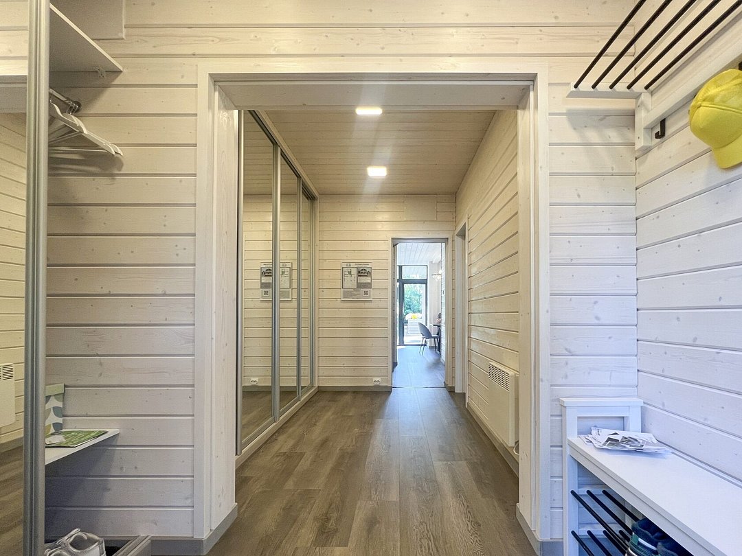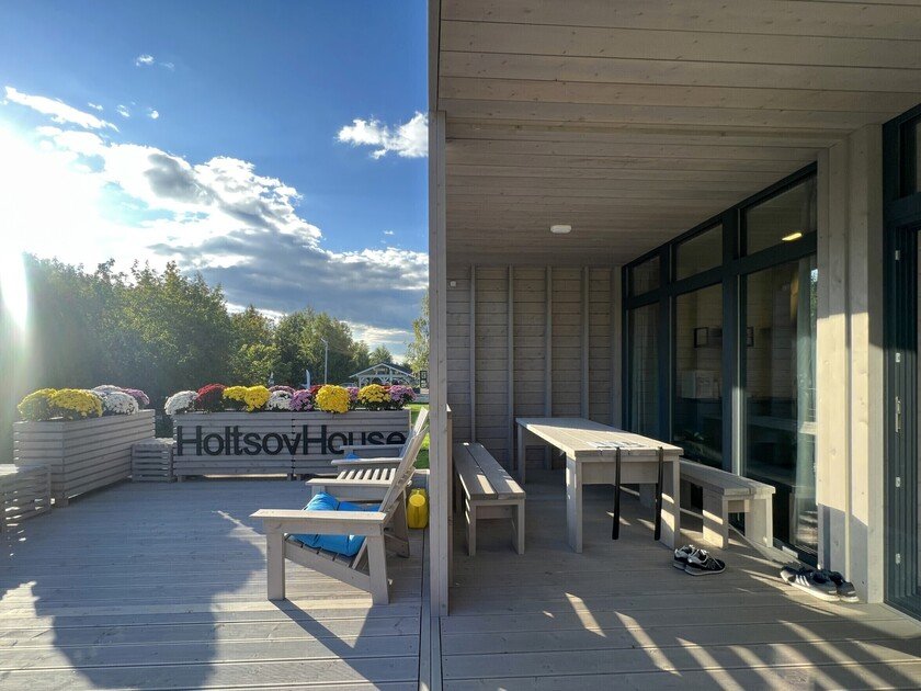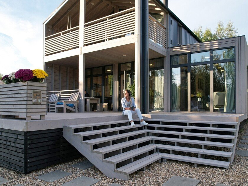 Дом №23 расположен на общей территории с домом №22. Здесь совместно используется парковка и зона костра — отличное место для теплых вечеров у огня. Забор частичный, как и во всем поселке — ценится простор и свобода.