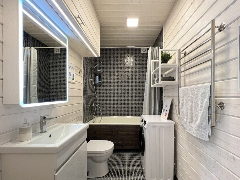 В доме два санузла: один с душевой кабиной, другой с ванной.