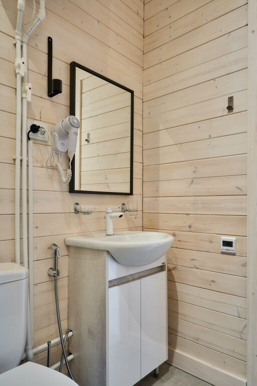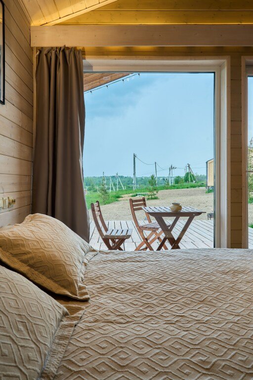 База отдыха состоит их дома в стиле барнхаус площадью 54 кв.м и террасы площадью 18 кв.м, рассчитана на 6 гостей.
