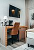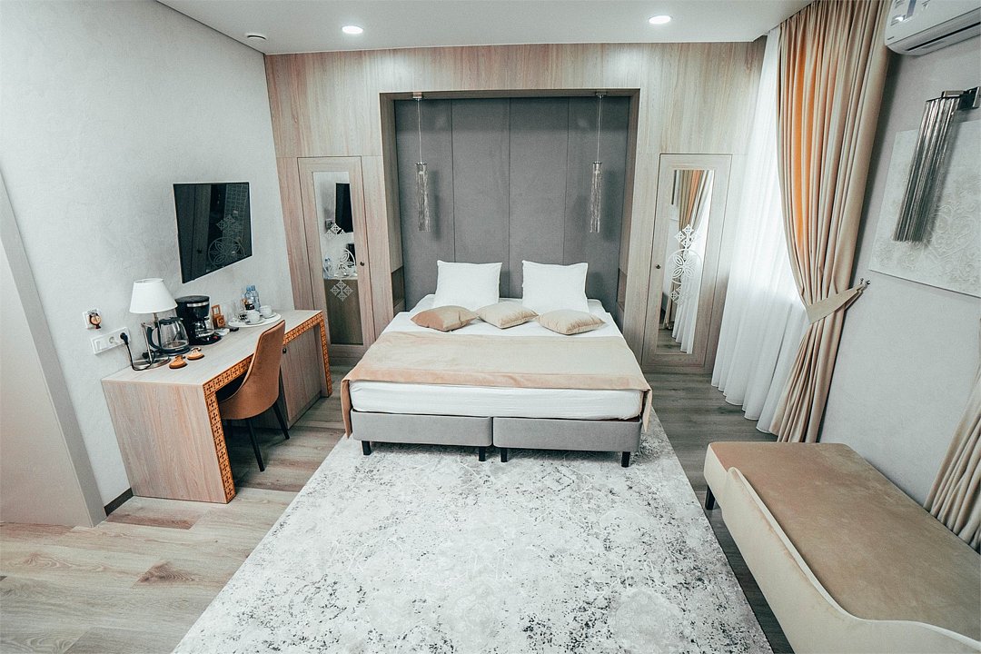 телевизор, кабельное телевидение, интерактивное телевидение, IP-телефон, холодильник, настольные лампы, электронные замки, ванная комната, ванна, ванна или душевая кабина, санузел, теплый пол, банные принадлежности, халаты, банные полотенца, тапочки, косметические средства, двуспальная кровать, две односпальные кровати, кресла, тумбы, стулья, шкаф для одежды, гардеробная, вешалки, журнальный столик, письменный стол, обеденный стол, багажная тумба, пуфики, ковер, эксклюзивная мебель, набор посуды, обслуживание номеров, информационная карта, меню, чайник, унитаз, мягкая мебель, питьевая вода, отопление, душ, вид на город, кулер на этаже, раздельный санузел, кухонная посуда, кофейный столик, стул, стол, тумба, туалетные средства, туалет, цифровое тв, телевизор с плоским экраном, гостиничная парфюмерия, телевизор со Smart TV, теплые полы, номер для некурящих, пуфик, рабочий столВ номере