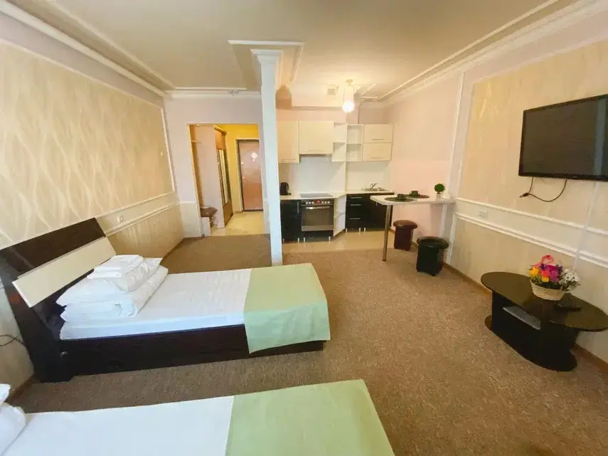 Номер уютно обставлен и оснащён необходимым, чтобы отдохнуть после долгого и насыщенного дня. Имеются телевизор и халат. Перечисленные услуги есть не во всех номерах.