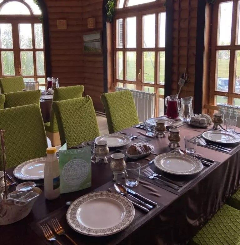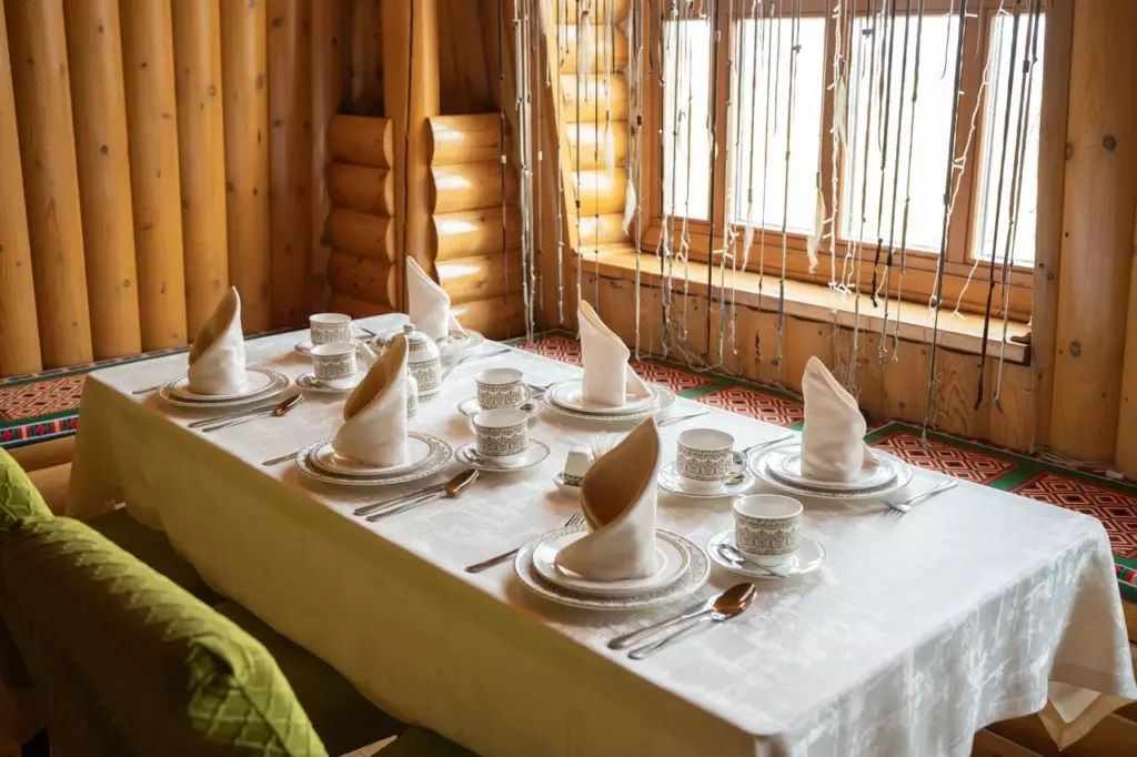 Питание организовано в ресторане Орто Дойду. В меню – блюда от шеф-повара, русская, европейская и национальная кухня. По утрам подается горячий завтрак. Обед и ужин можно приобрести дополнительно. Для проведения торжественных мероприятий кроме основного зала, имеется вип-зал на 25 персон, и малый зал Камелек до 12 посадочных мест. На территории также установлен навес для банкетов. Для пикников предусмотрены три крытые беседки на территории, с мангалом, столами и скамейками. Беседки подогреваются тепловыми пушками, поэтому аренда возможна в том числе в холодное время года.