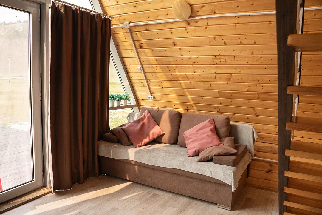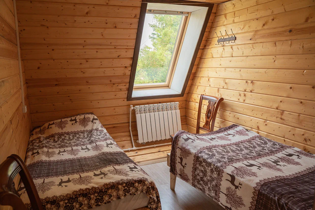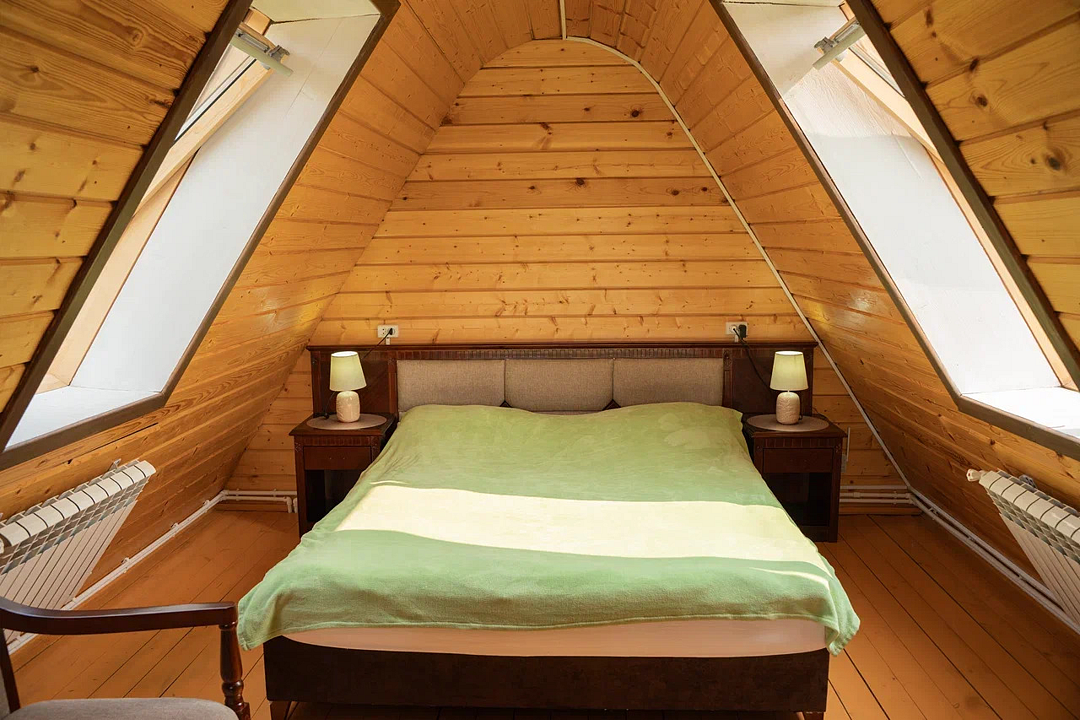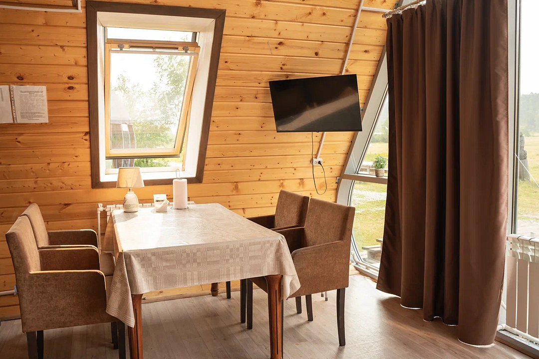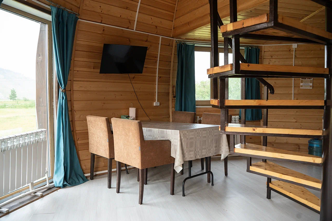 Эко-отель представляет собой комплекс из 7 двухэтажных домиков. В каждом домике мини-кухня, оборудованная плитой, посудой, холодильником и микроволной печью. Обеденная зона со столом и стульями. В ванной комнате – душ, туалетно-косметические принадлежности. Часть домиков имеет панорамные окна, веранду или террасу. Доступен беспроводной интернет wi-fi.