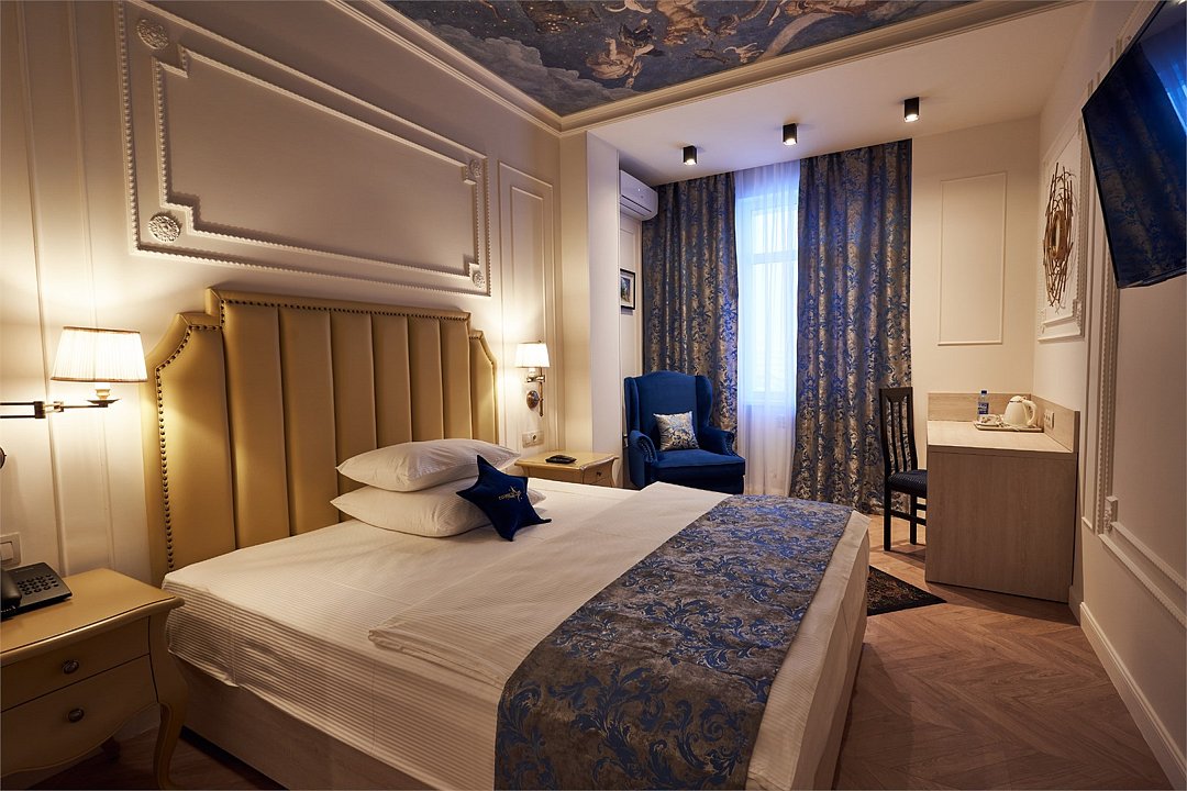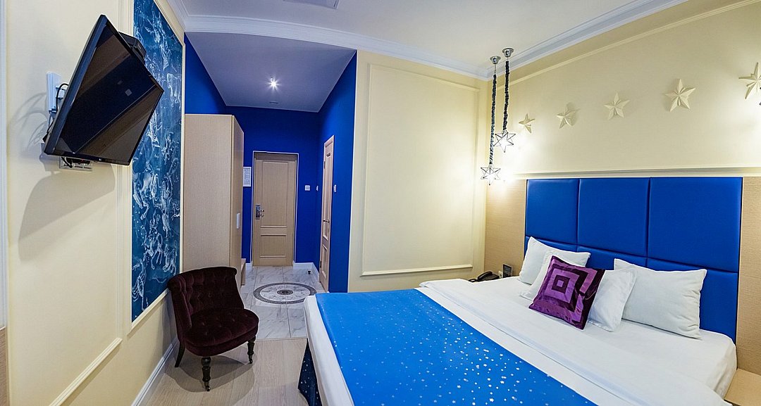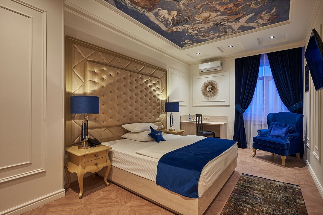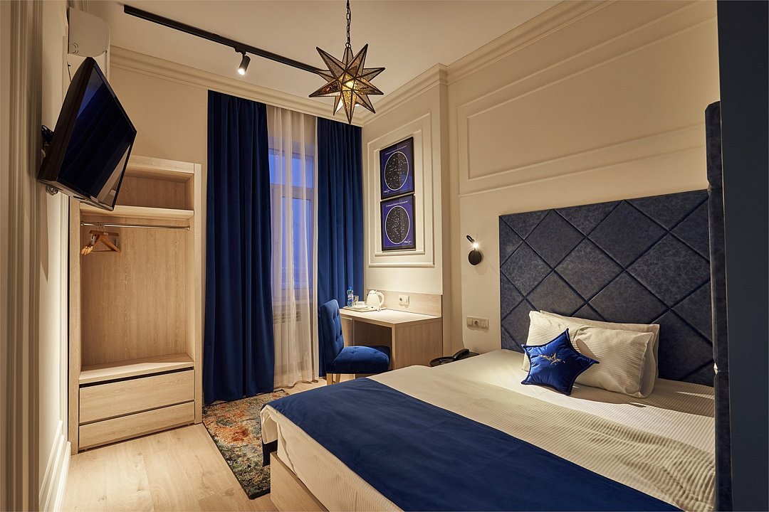 Уютный и комфортабельный двухместный номер площадью 26 м². В стоимость номера входит континентальный завтрак, который подается в удобное для Вас время. В номере расположена большая уютная двухспальная кровать размером 160×200 см с современным матрасом, уютным одеялом и антистрессовыми подушками. Также есть шкаф, прикроватные тумбочки, прикроватные светильники, туалетный столик с зеркалом, стул, багажница. В ванной комнате установлена ванна, предоставляются туалетные принадлежности, фен, тапочки, по запросу — халат. В номере работает приточно-вытяжная система с кондиционированием для вашего комфорта. Вы найдете достойное место в нашем "Созвездии"!Услуги и удобства