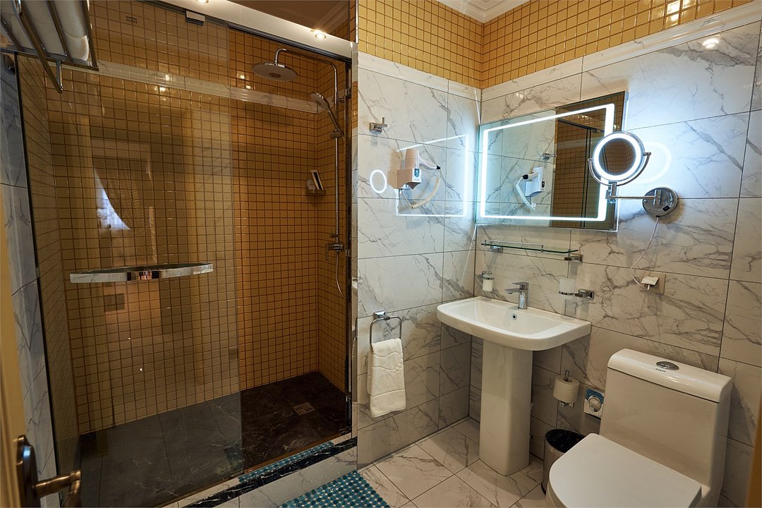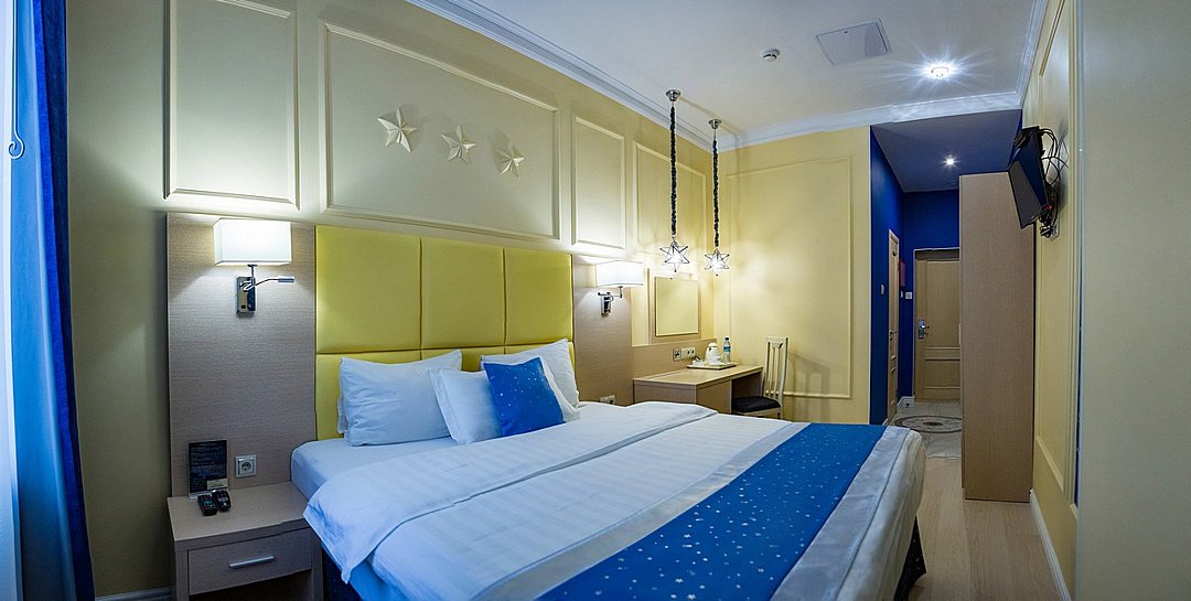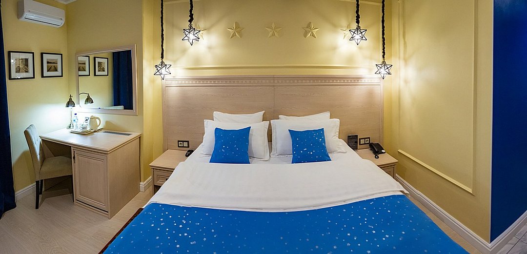 Уютный и комфортабельный двухместный номер площадью 30 м². В стоимость номера входит континентальный завтрак, который подается в удобное для Вас время. В номере расположена большая уютная двухспальная кровать размером 180×200 см с современным матрасом, уютным одеялом и антистрессовыми подушками. Также есть шкаф, прикроватные тумбочки, прикроватные светильники, туалетный столик с зеркалом, стул, багажница. В ванной комнате установлена душевая кабина, предоставляются туалетные принадлежности, фен, тапочки, по запросу — халат. В номере работает приточно-вытяжная система с кондиционированием для вашего комфорта. Вы найдете достойное место в нашем "Созвездии"!Услуги и удобства