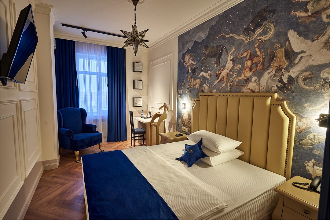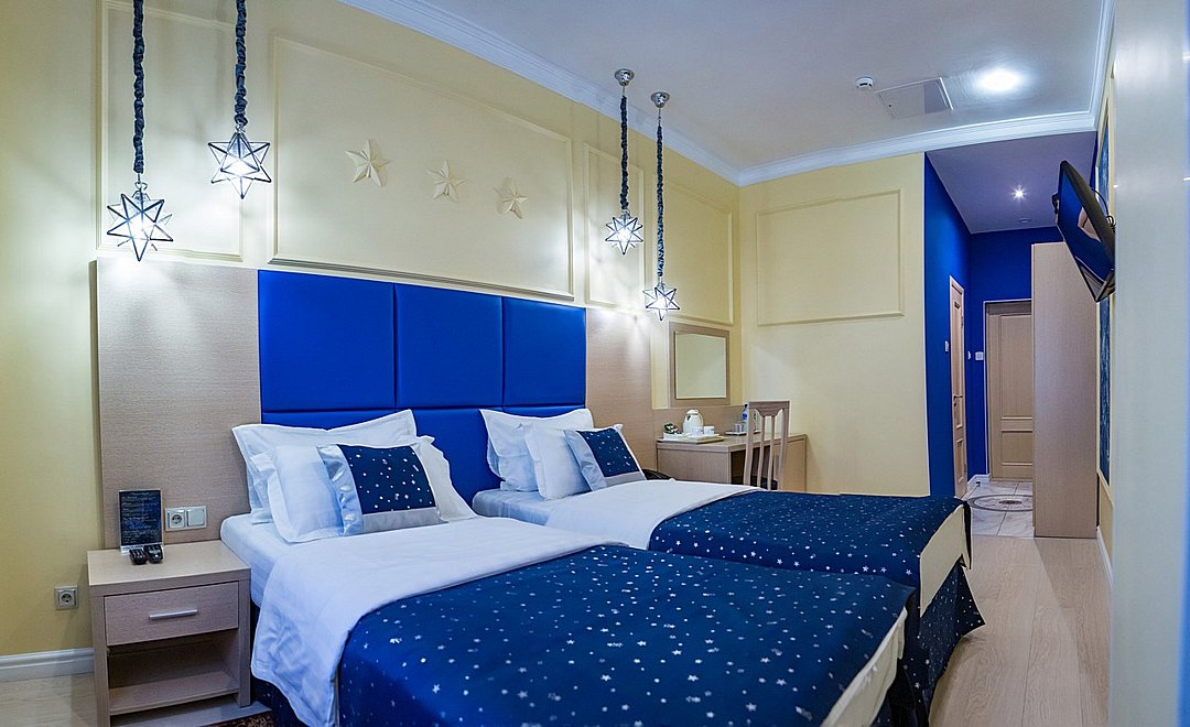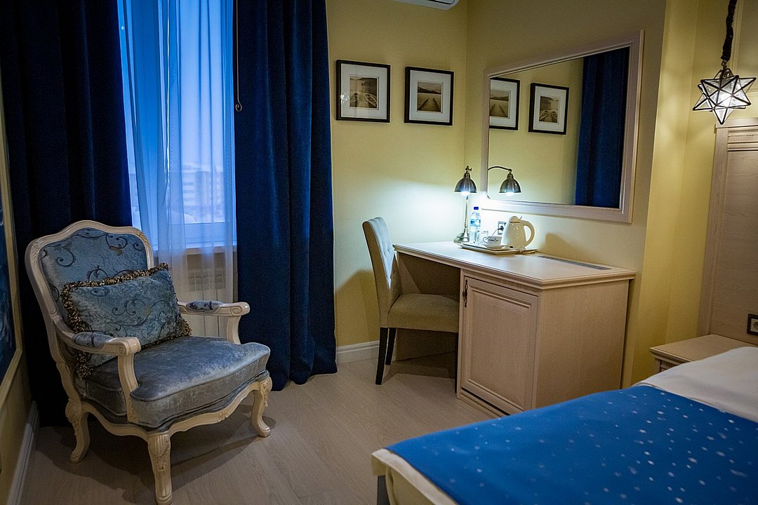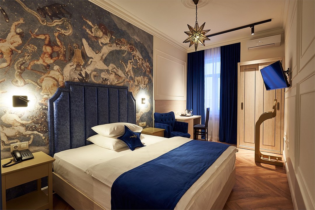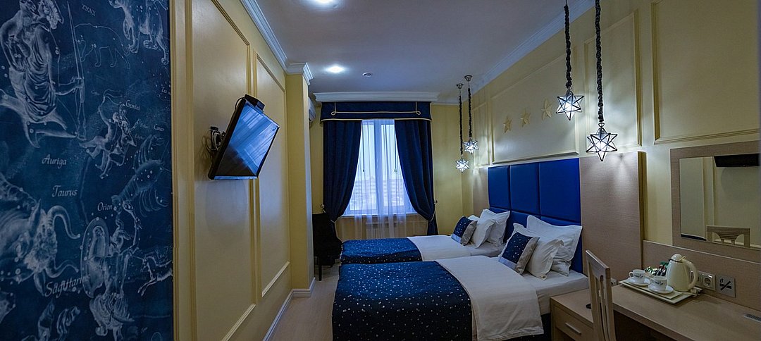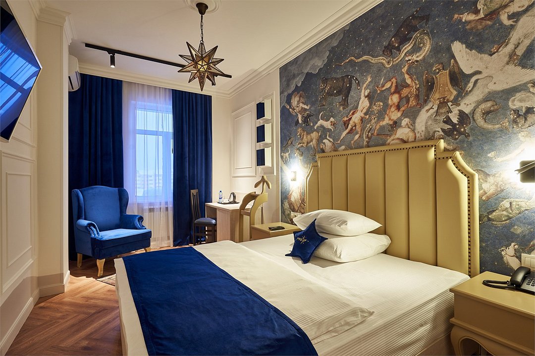 Уютный и комфортабельный двухместный номер площадью 26 м². В стоимость номера входит континентальный завтрак, который подается в удобное для Вас время. В номере расположена большая уютная двухспальная кровать размером 180×200 см с современным матрасом или две односпальные кровати по 90×200 см, оснащенные уютным одеялом и антистрессовыми подушками. Также есть шкаф, прикроватные тумбочки, прикроватные светильники, туалетный столик с зеркалом, стул, багажница и камин для создания теплой атмосферы. В ванной комнате установлена ванна, предоставляются туалетные принадлежности, тапочки, по запросу — халат и фен. В номере работает приточно-вытяжная система с кондиционированием для вашего комфорта. Вы найдете достойное место в нашем "Созвездии"!Услуги и удобства