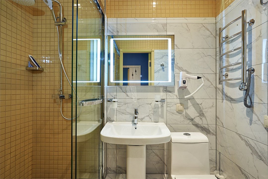 Двухместный номер "Стандарт+" с ванной, площадью 21 м². В стоимость входит континентальный завтрак, который подается в номер в удобное для Вас время. В номере расположена большая уютная кровать размером 180×200 см с современным матрасом или две односпальные кровати по 90×200 см, оснащенные антистрессовыми подушками и мягким теплым одеялом. Также есть шкаф для одежды, две прикроватные тумбочки, прикроватное освещение, зеркало, стул, кресло, багажница и кондиционер. В ванной комнате установлена ванна, предоставляются туалетные принадлежности, тапочки, по запросу — халат и фен. В номере работает приточно-вытяжная система с кондиционированием для вашего комфорта. Вы найдете достойное место в нашем "Созвездии"!Услуги и удобства
