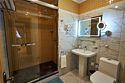 телевизор, кабельное телевидение, Wi-Fi, кондиционер, светильник, фен, электронные замки, душевая кабина, санузел, банные принадлежности, банные полотенца, тапочки, косметические средства, двуспальная кровать, тумбы, шкаф для одежды, вешалки, багажная тумба, зеркало, чайный набор, обслуживание номеров, чайник, унитаз, раковина, косметическое зеркало, питьевая вода, отопление, душ, кресло, вид во двор, ламинат, стаканы, стул, стол, туалетные средства, туалет, цифровое тв, внутренний телефон, телевизор с плоским экраном, мини-холодильник, чайная станция, уборка номера, вешалки-плечики, бутилированная водаВ номере