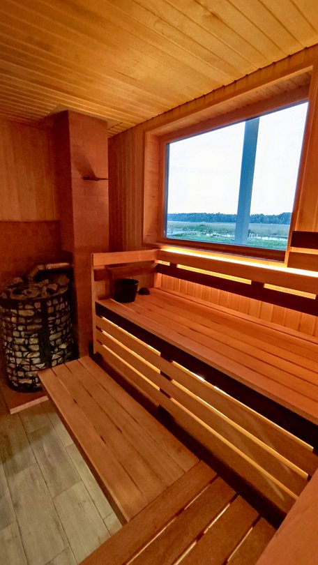 В уютных домиках расположена настоящая русская баня, где можно насладиться парением, не выходя из дома. Чтобы начать процедуру, достаточно самостоятельно растопить печь дровами, которые можно взять на территории курорта.