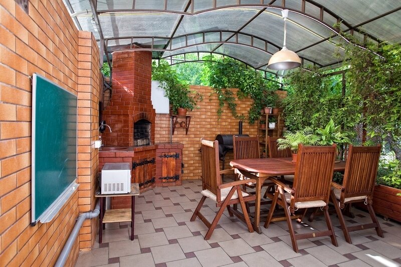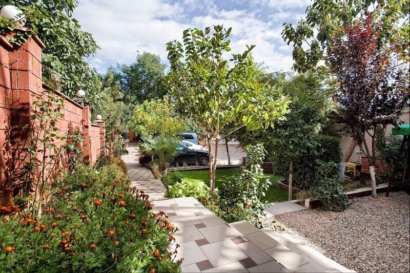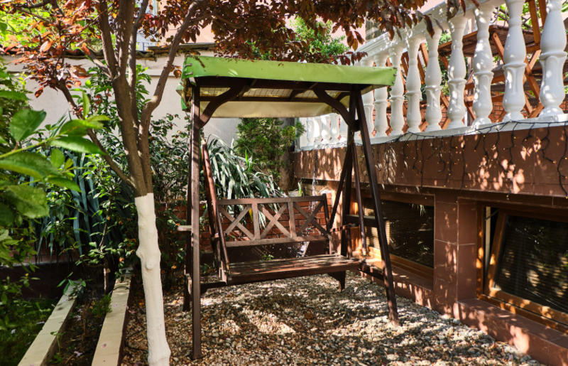 На территории оборудована закрытая парковка и уютная беседка с зоной барбекю, где можно насладиться отдыхом на свежем воздухе и полюбоваться садом.
