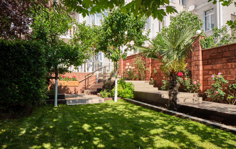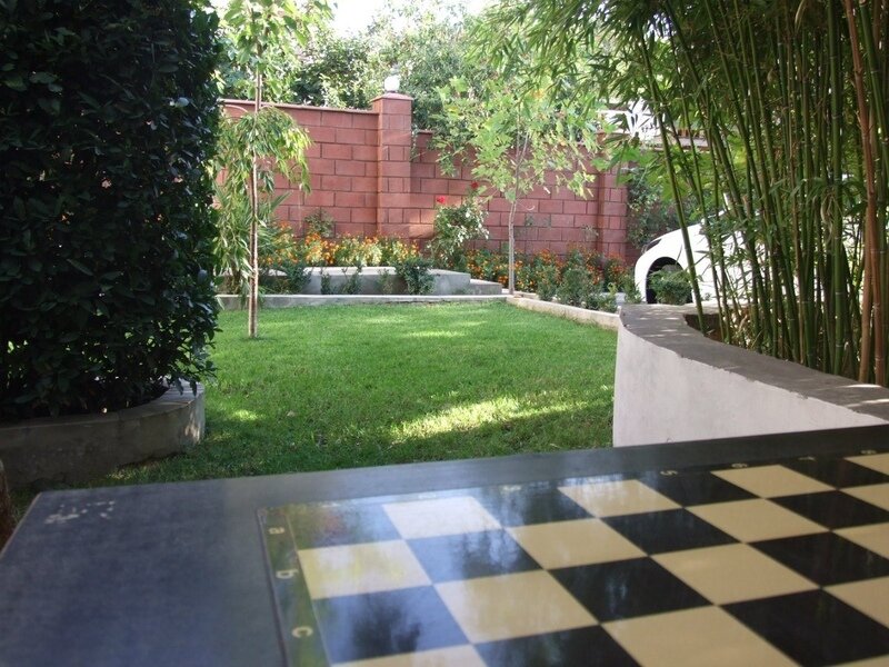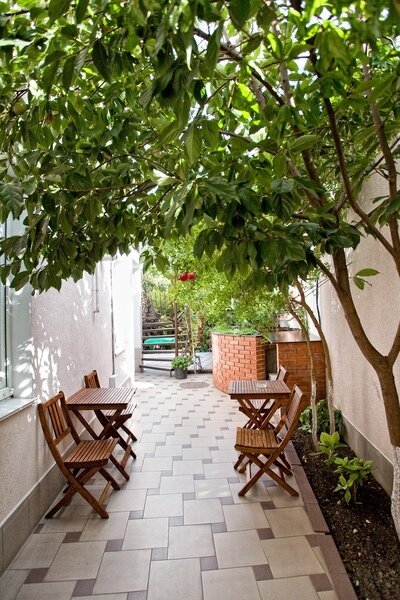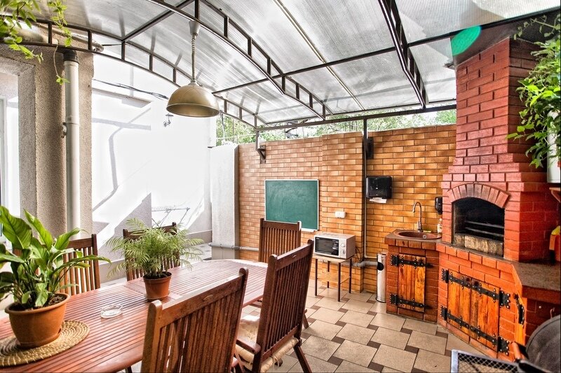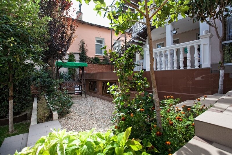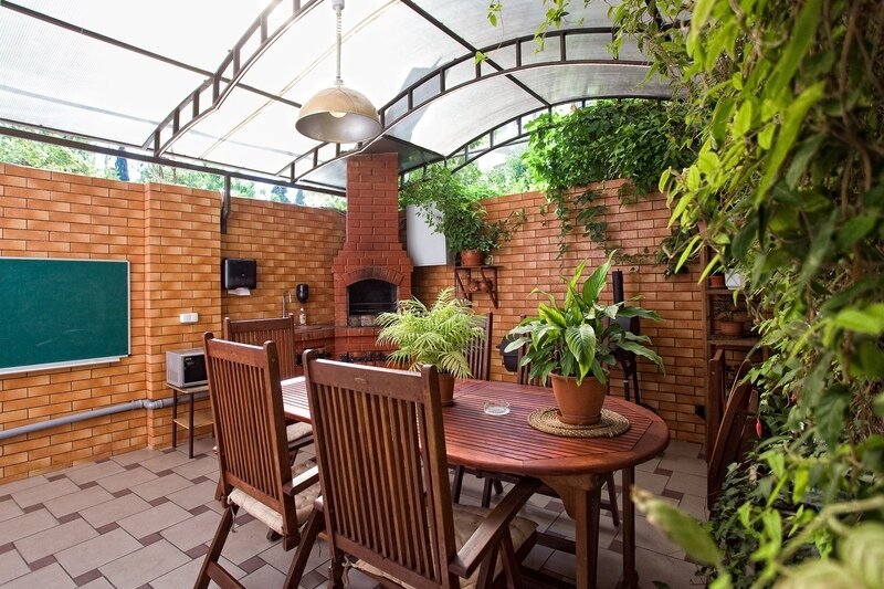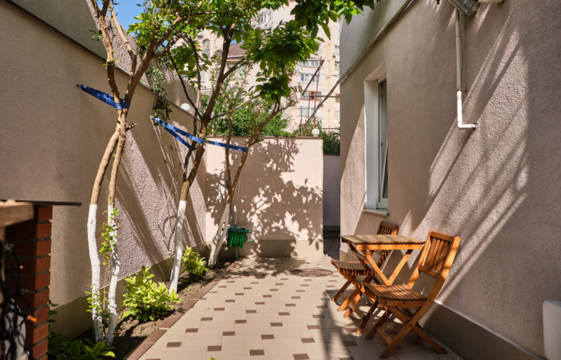 Гостям доступна территория внутреннего дворика: закрыта ночью, открыта днем.