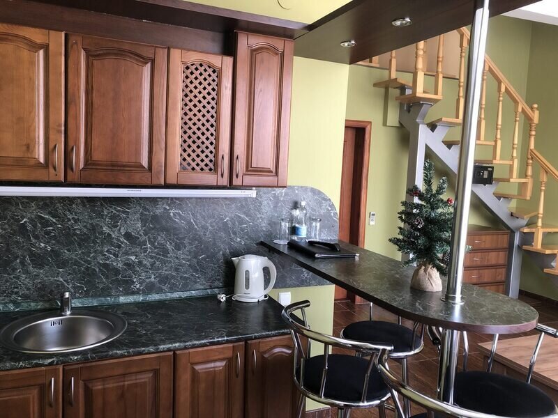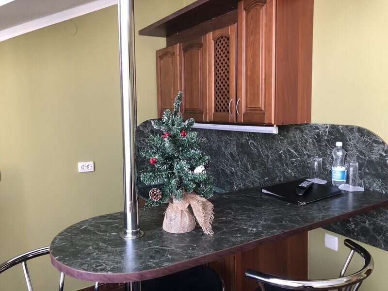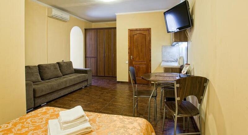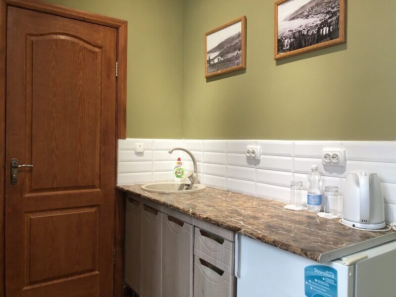 Все номера в отеле оборудованы кухней с посудой, электрочайником и плиткой для приготовления пищи. Регулярно производится уборка номеров.