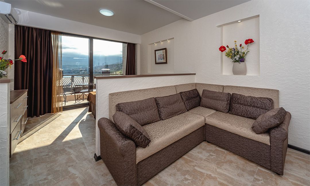 Wi-Fi, холодильник, кондиционер, фен, электронные замки, плита для приготовления пищи, микроволновая печь, утюг, водонагреватель, банные полотенца, пляжные полотенца, балкон с красивым видом, двуспальная кровать, гладильная доска, барная стойка, зеркало, набор посуды, сейф, стиральная машина, унитаз, раковина, обеденная зона, душ, вид на море, вид на город, плиточное покрытие, стаканы, столовые приборы, стиральная машина и сушилка, панорамные окна, телевизор с плоским экраном, вид на горы, угловой диван-кроватьВ гостиничном номере