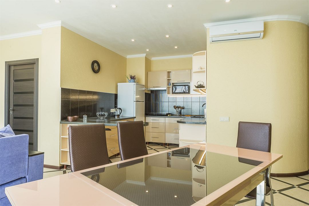 два телевизора, спутниковое телевидение, Wi-Fi, интернет, холодильник, кондиционер, фен, плита для приготовления пищи, микроволновая печь, утюг, ванная комната, водонагреватель, банные полотенца, пляжные полотенца, кровать «King size», гладильная доска, диван, стулья, шкаф для одежды, вешалки, обеденный стол, зеркало, комод, две комнаты, кухня, чайный набор, набор посуды, чайник, унитаз, раковина, обеденная зона, гостиная зона, отдельный вход в номер, душ, вид на море, вид на город, высокие потолки, кухонная посуда, стаканы, кухонная утварь, столовые приборы, стиральная машина и сушилка, туалет, сплит-система, раскладной диван, телевизор с плоским экраном, вид на горы, телевизор со Smart TV, два дивана-кроватиВ апартаментах