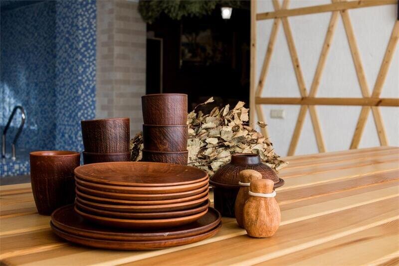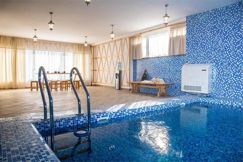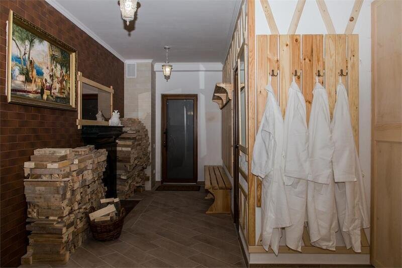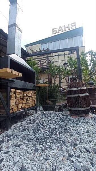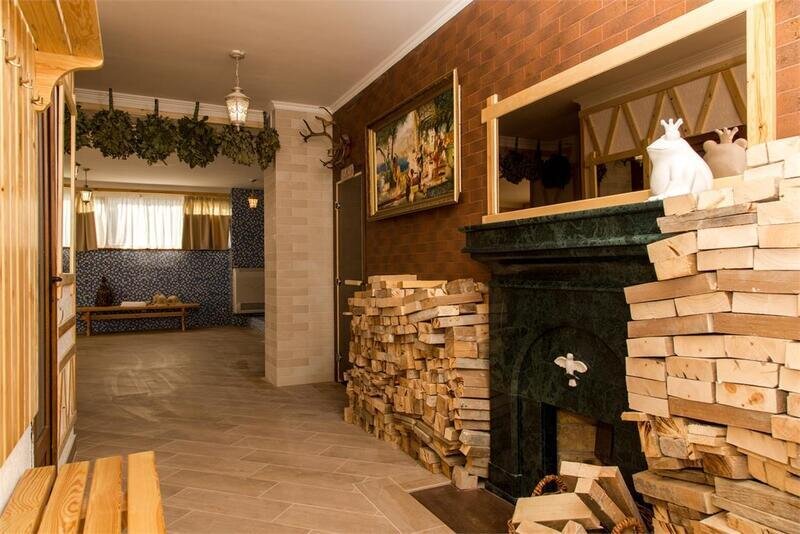 На территории гостиного дома есть открытый бассейн, уютное кафе с банкетным залом и баня с купелью и зоной отдыха.