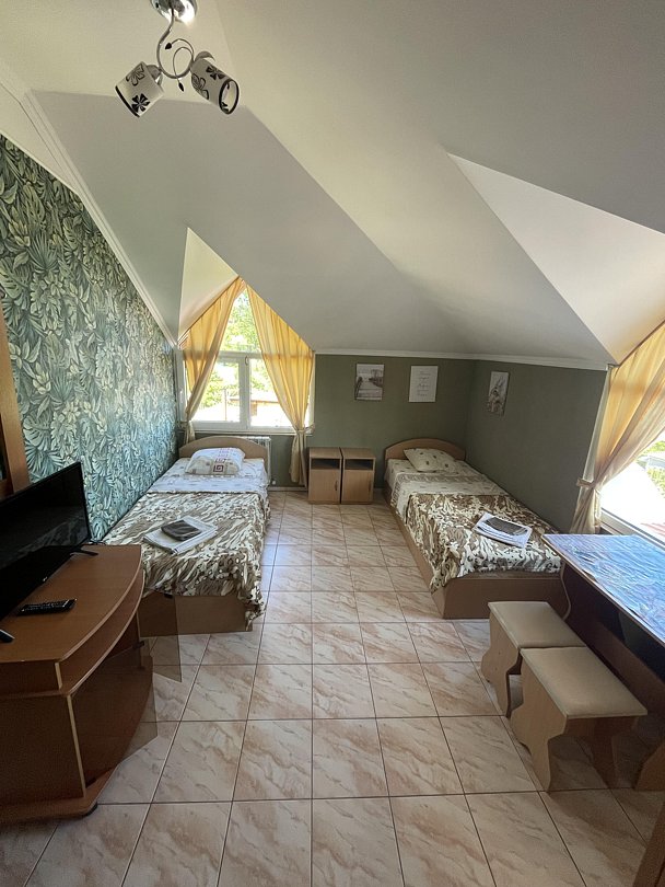 К услугам гостей предоставлены 15 номеров категории 2-х и 3-х местные. Каждый из которых оборудован мебелью, кондиционером и необходимой техникой. Имеется парковка где желающие могут оставить свой автомобиль.