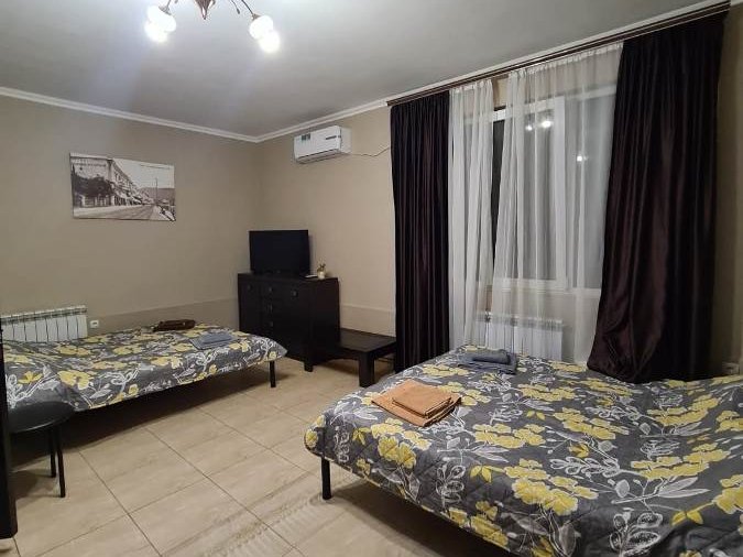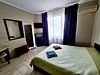 В номере: кровати односпальные, кровать двуспальная, шкаф, комод, стулья, стол, вешалка, кондиционер, Wi-Fi интернет, спутниковое ТВ, телевизор, кухонный стол, обеденный стол, СВЧ, холодильник, электрочайник, посуда, утюг, фен, санузел и душ в номере.В номере