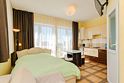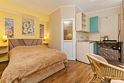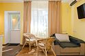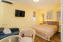 На первом этаже обустроено три стандартных номера и общая для них кухня. На втором и третьем этаже находятся два номера повышенной комфортности — апартаменты, полностью приспособленные для домашней жизни. Каждый из семи номеров оборудован спальными местами, кондиционером, ЖК-телевизором, индивидуальным санузлом и душем.