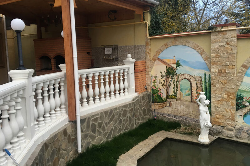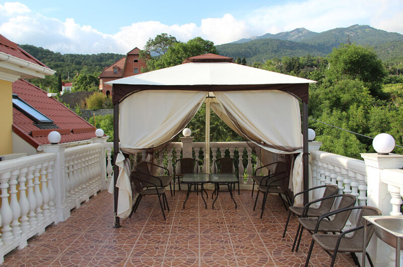 С таким видом, какой открывается с террасы гостевого дома в Массандре, утренний кофе или романтический ужин автоматически становится вкуснее и душевнее. Устраивайтесь поудобнее и наслаждайтесь великолепным видом завода «Массандра» и вызревающих на солнце бочек с вином, безграничной водной гладью и богатой зеленью крымских склонов, вдыхая чистый воздух, наполненный полезными веществами.