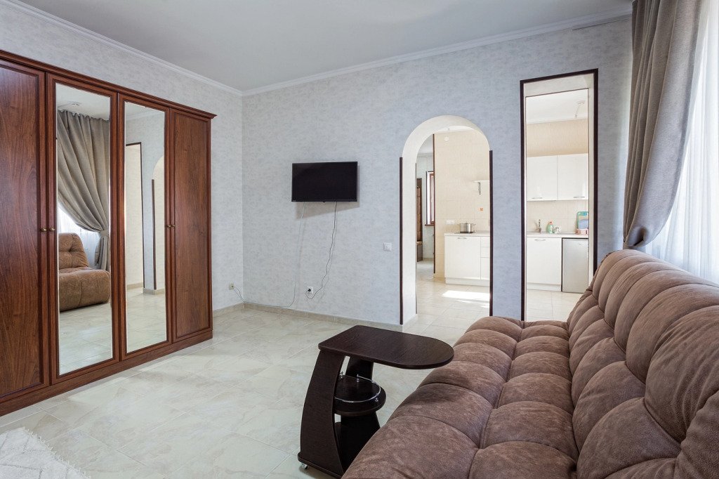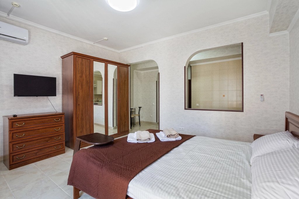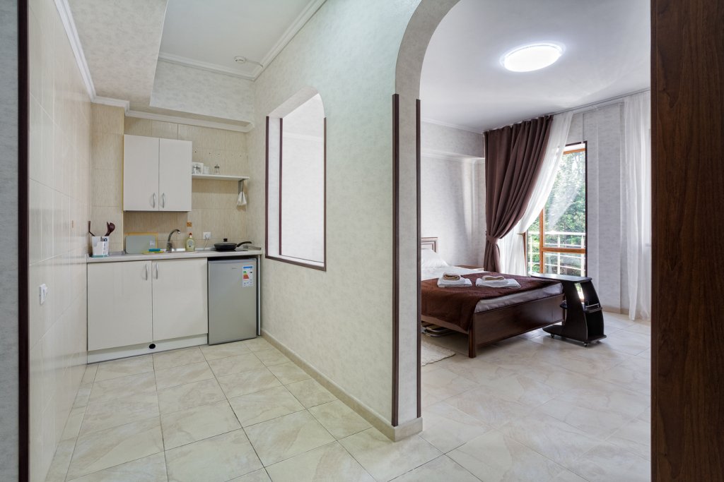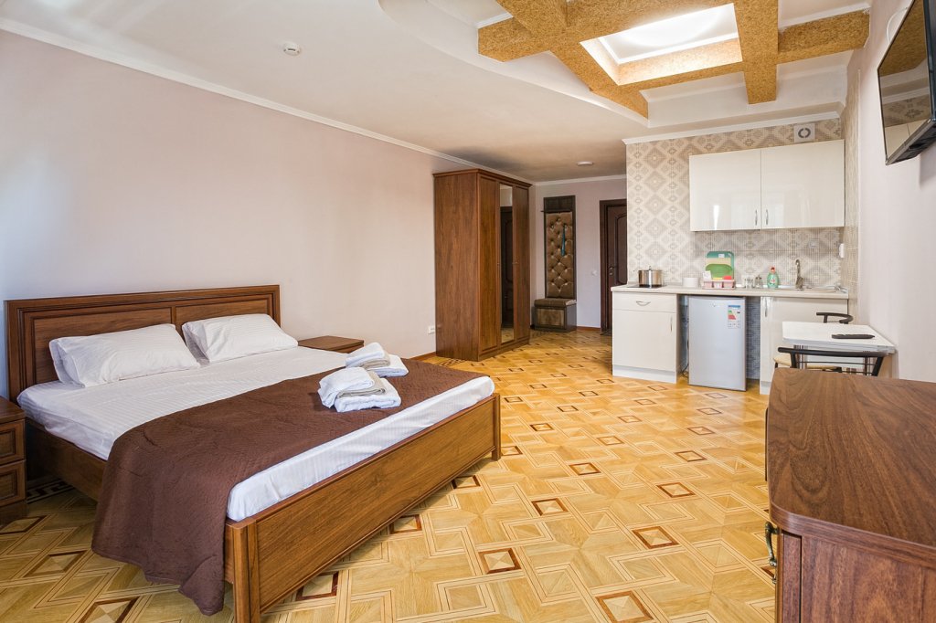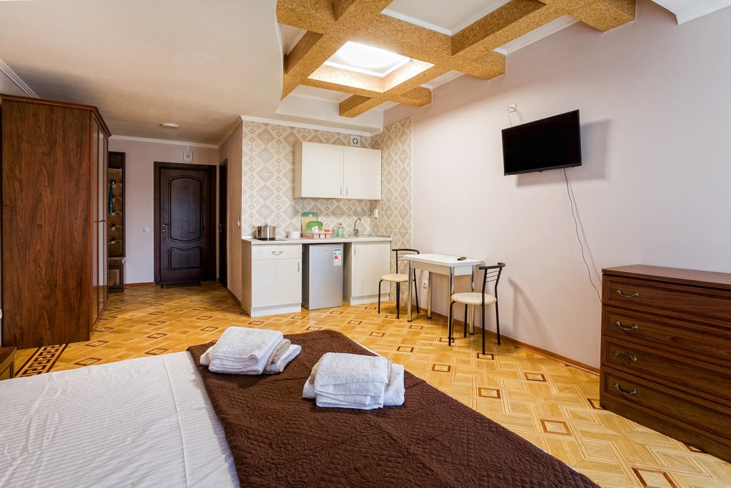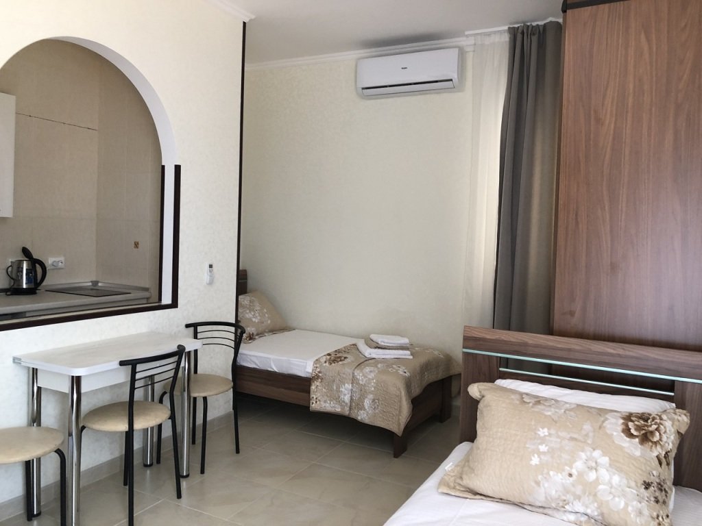 Апарт-отель располагает 15 комфортабельными номерами. В каждом номере мебель, санузел с душевой кабиной, феном и сантехникой, кондиционер, сейф, Wi Fi. Кухонный уголок оборудован холодильником, варочной поверхностью и посудой.