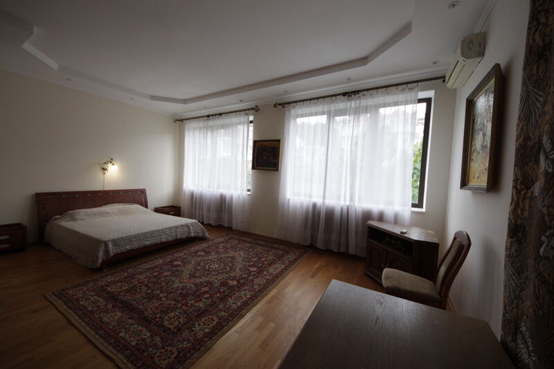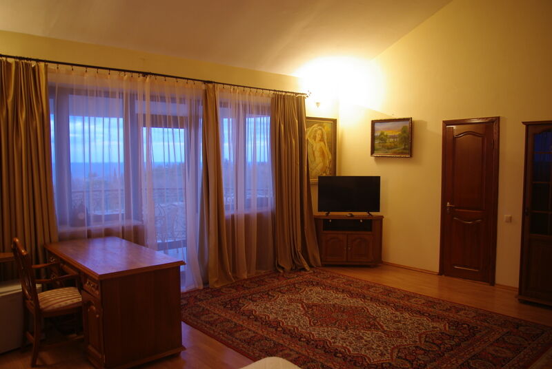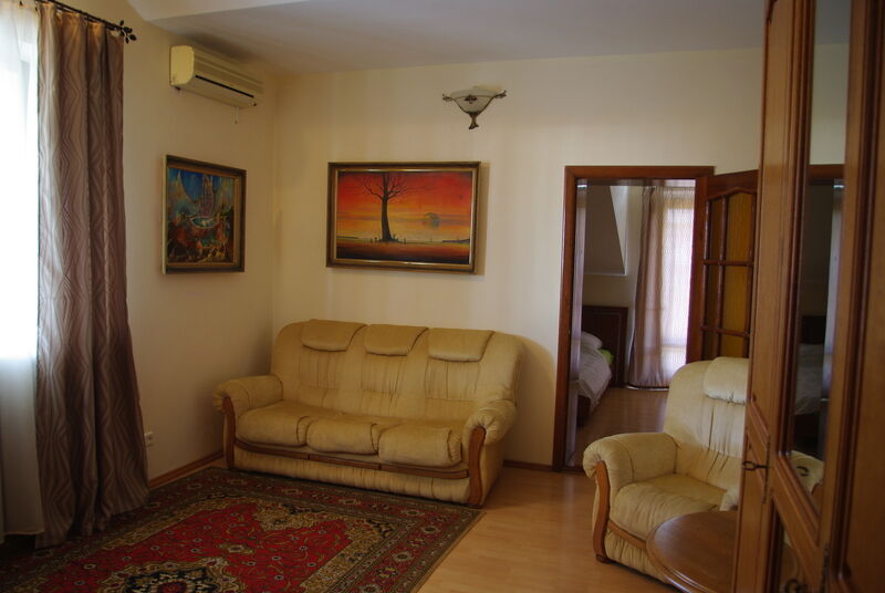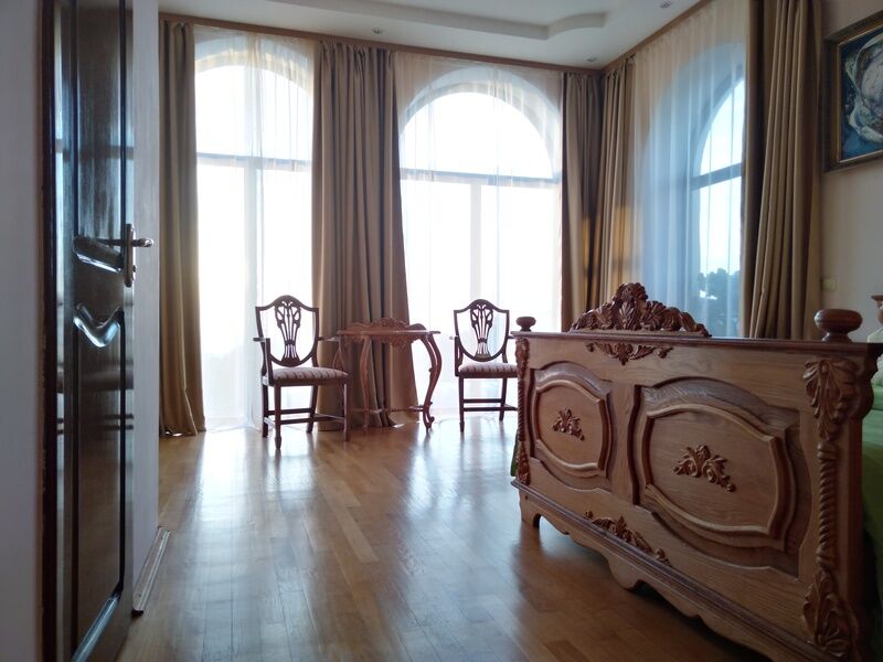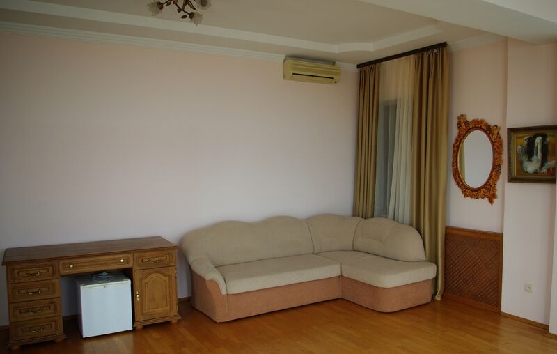 Трехэтажная белоснежная вилла расположена в окружении виноградников и экзотических южных растений всего в 400 метрах от моря. Украшением интерьера виллы служат мраморные лестницы, изящные кованые перила и картины известных мастеров. Гостей ожидают двухместные, номера разных категорий комфорта. В номерах установлена сплит-система, есть индивидуальный санузел, необходимая бытовая техника, в большинстве комнат — красивая резная мебель.