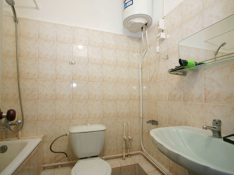 НедостаткиСтарые номера, неудобные матрасы. В санузле потрескавшаяся плитка и ржавчина