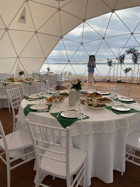 Банкетный купол «Сингуль», вмещающий до 100 гостей, приглашает окунуться в пленительную красоту озерного пейзажа, открывая многоуровневую зону для фуршета и живописные фотозоны. Независимо от формата вашего торжества — будь то свадебное празднество, корпоративное событие или выпускной вечер — команда профессионалов создаст атмосферу, отражающую ваш безупречный вкус.