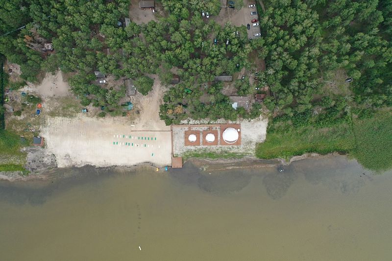 Огороженный, насыпной пляж-веранда. Купальный понтон. Летнее кафе на берегу Волги с прохладительными напитками и мороженным. Прокат катера.