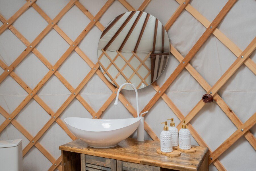 Особую привлекательность юрте придаёт просторная терраса с дизайнерскими лежаками, откуда открываются завораживающие виды на окружающую природу. Здесь вы сможете наслаждаться утренними рассветами и вечерними закатами, погружаясь в атмосферу полного умиротворения.
