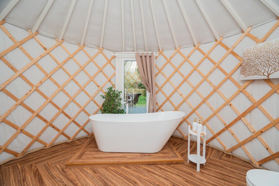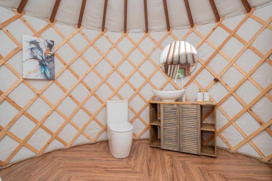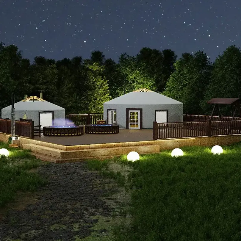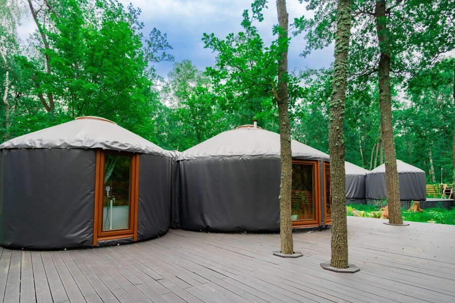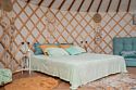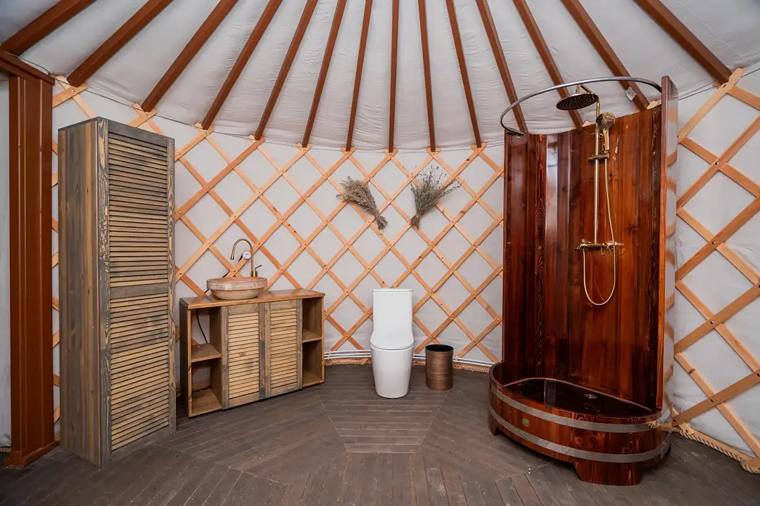 Для проживания гостей предлагаются комфортные юрты, которые сочетают в себе древние традиции и современные удобства. Внутри каждой юрты имеется холодильник, телевизор, микроволновая печь, набор посуды, кондиционер, а также собственный санузел с ванной. Просторное помещение оборудовано современной системой отопления, зоной отдыха и большой террасой с шезлонгами для отдыха на свежем воздухе.