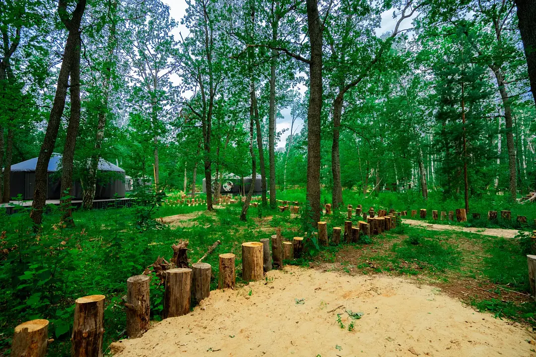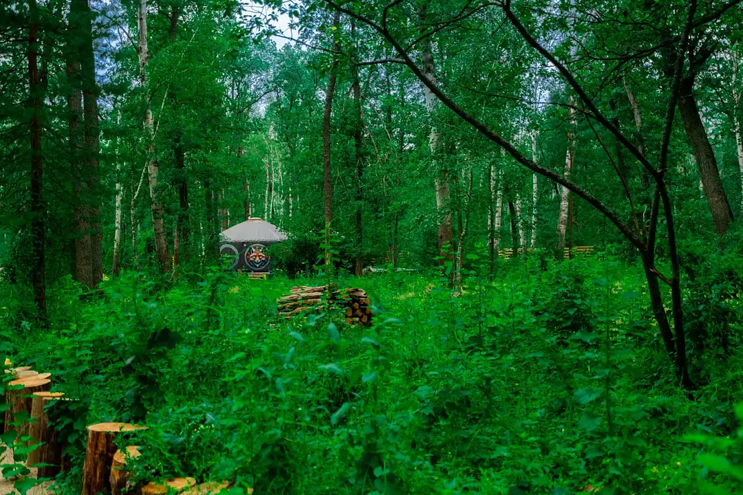 Окружённая вековыми деревьями, юрта создаёт неповторимую атмосферу умиротворения и единения с природой, где каждый звук леса и дуновение ветра становятся частью вашего отдыха.