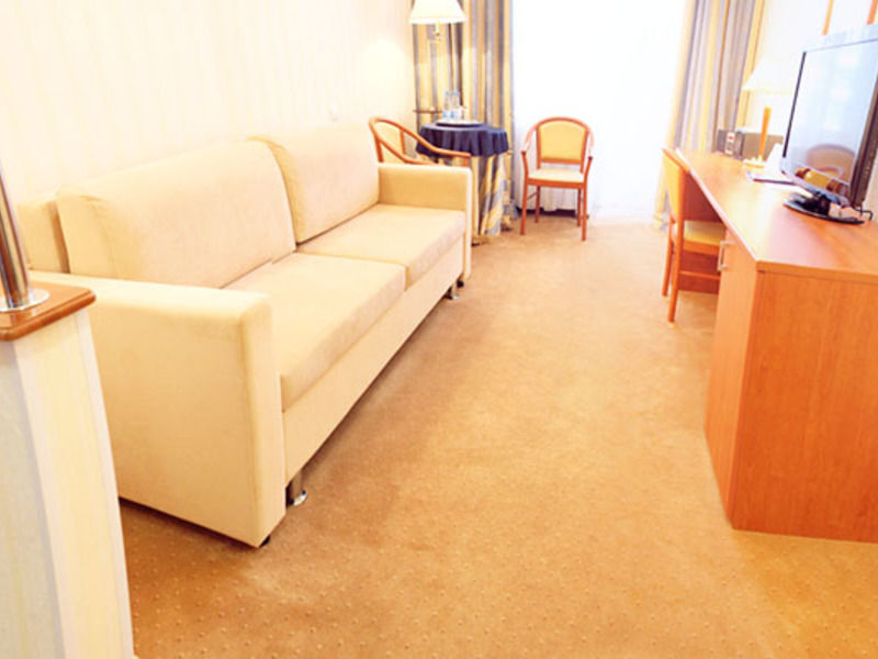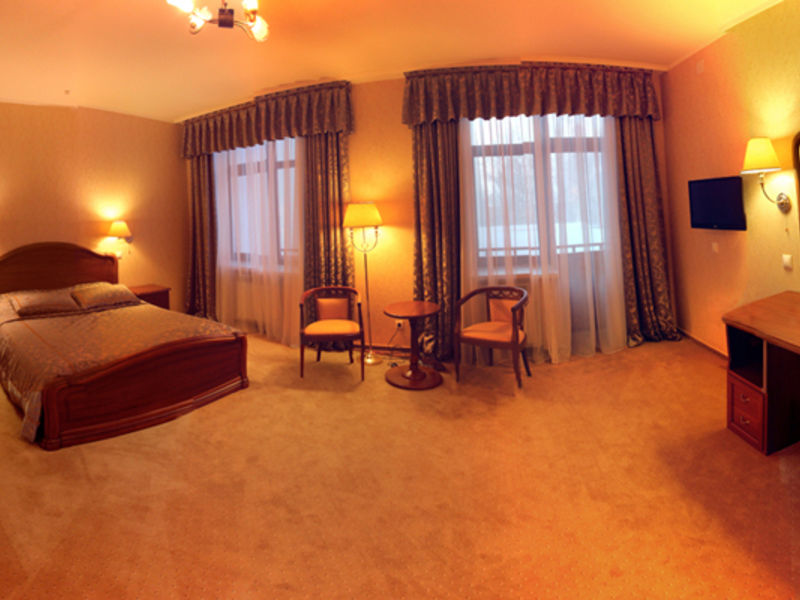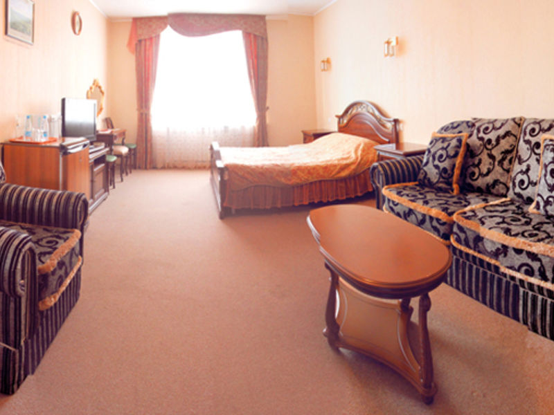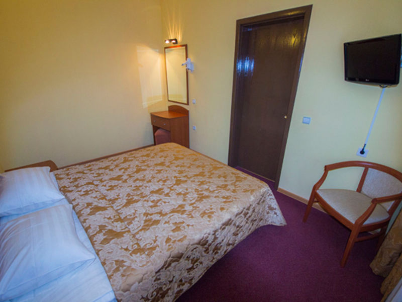 34м2, 2-спальная кровать, прикроватные тумбочки, диван, стол, ТВ, минихолодильник, чайник, сейф, с/у, душ, фен