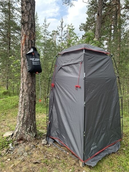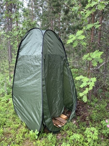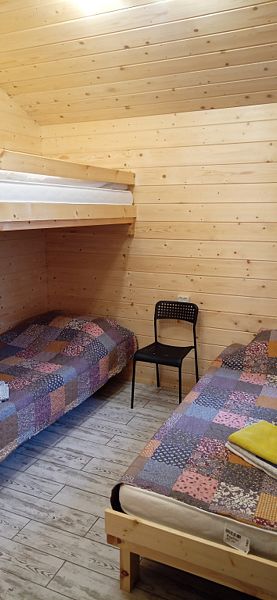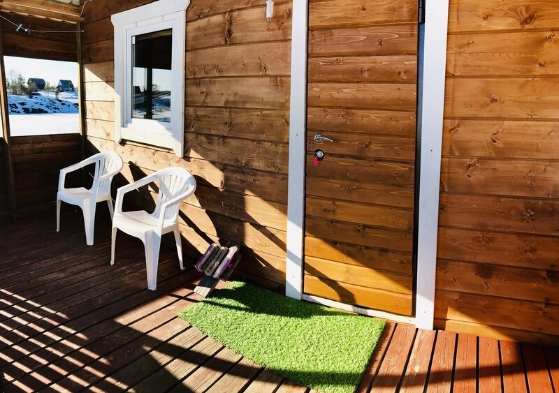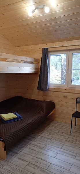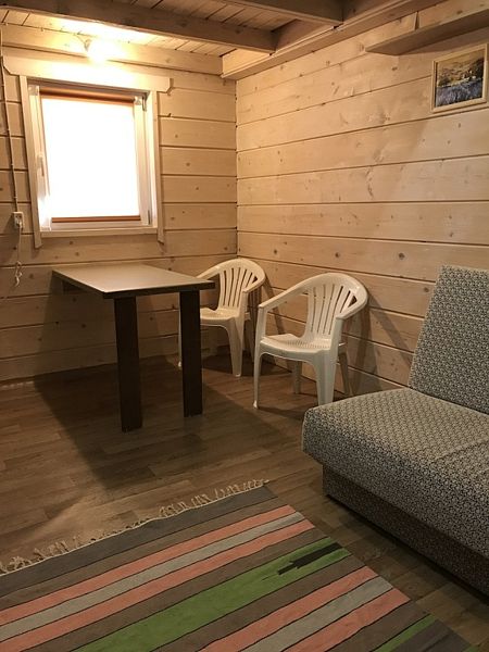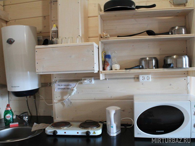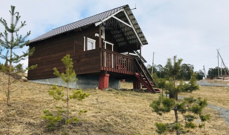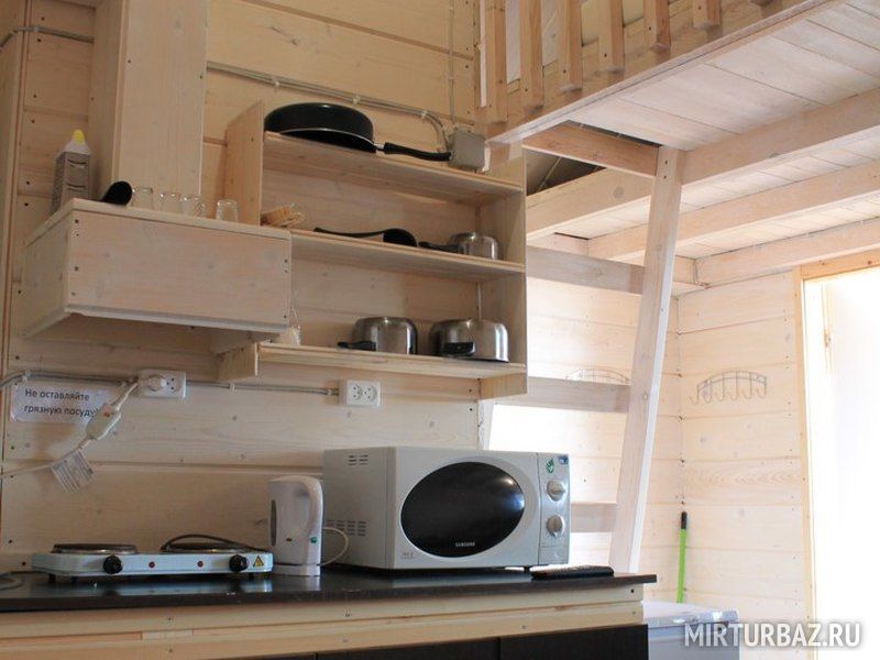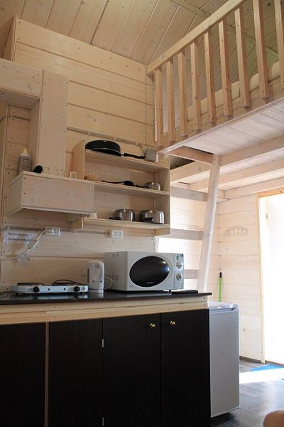 Благоустроенный домик с душем, кухней и туалетом. Вмещает до трёх гостей.