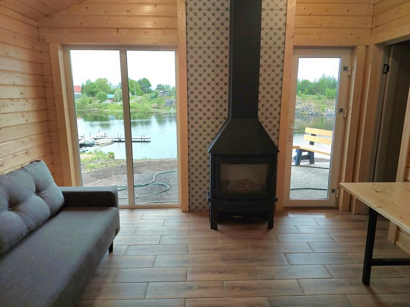 Две спальни, зал-кухня, современный санузел. Отопление тёплыми полами. Первая линия Онежского озера, кондиционер, камин и увеличенная терраса с мебелью.