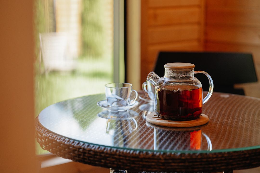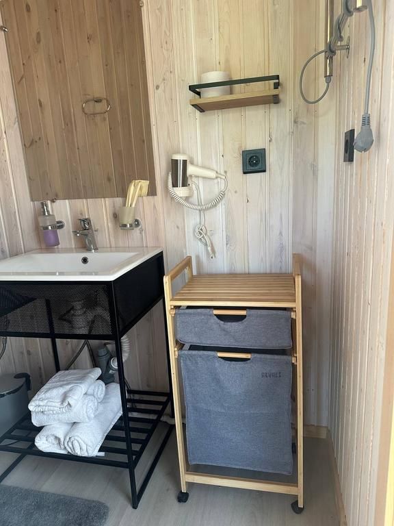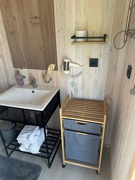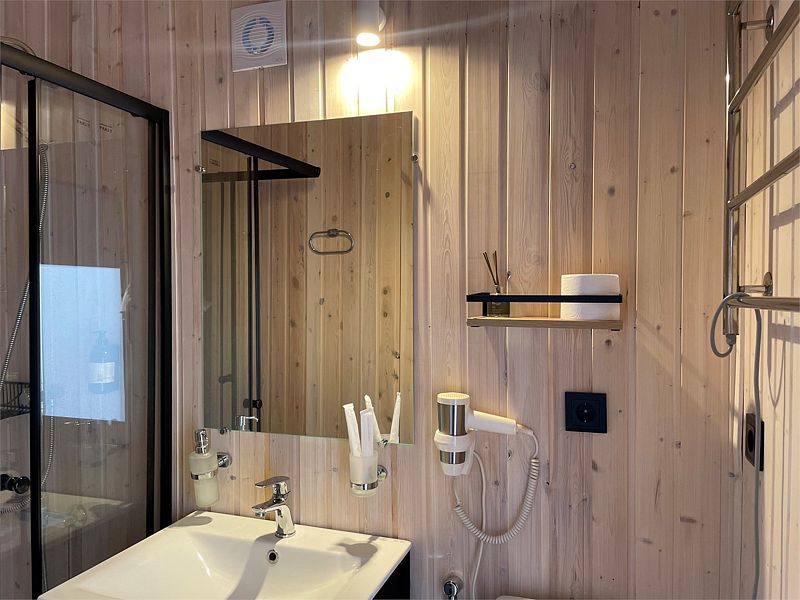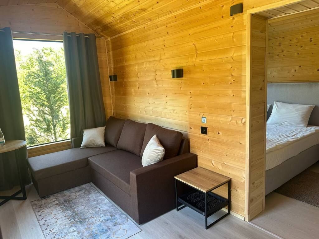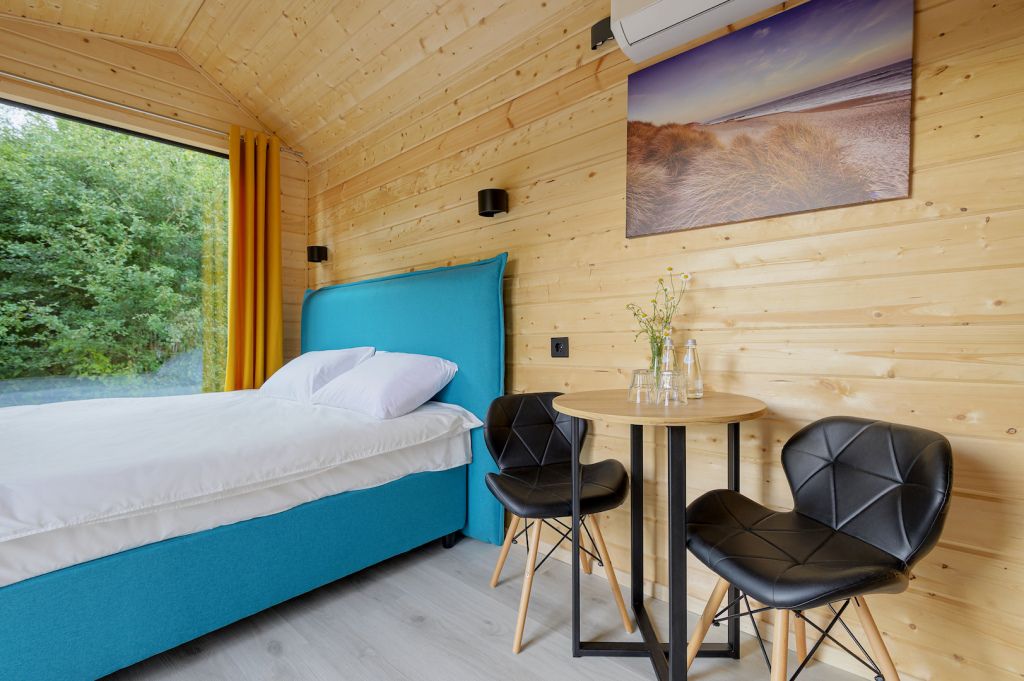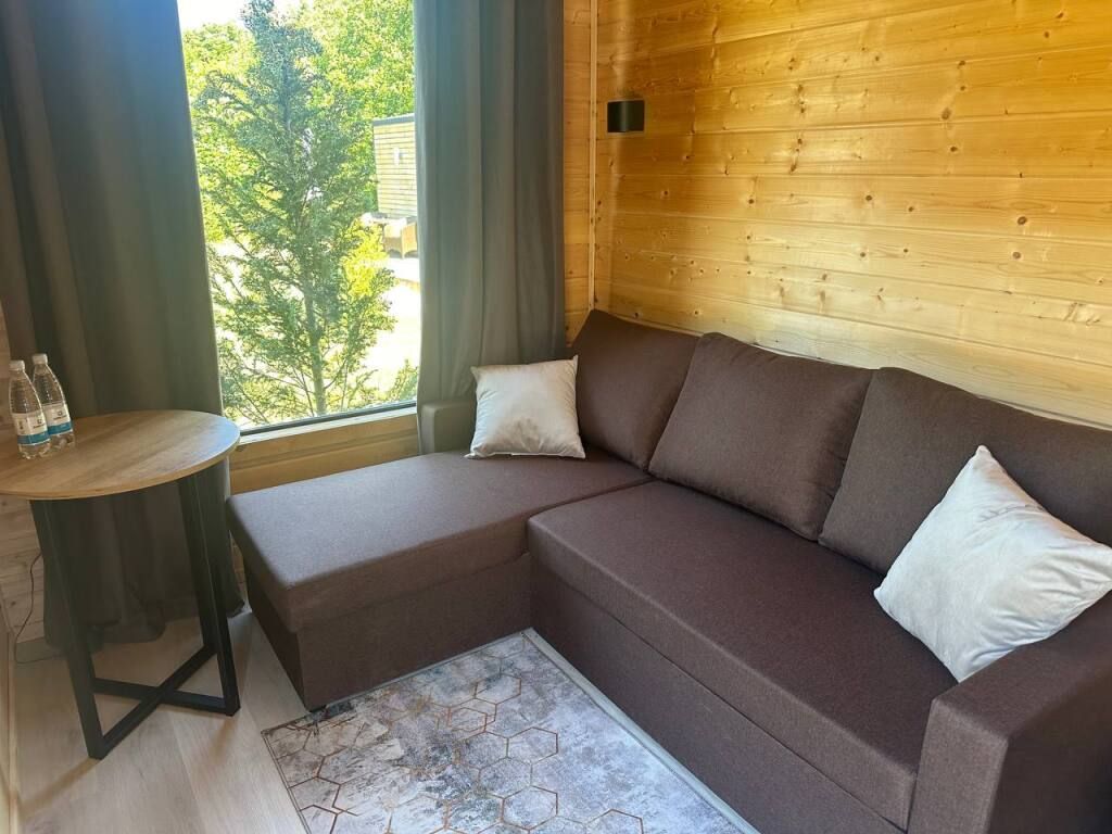 Уютный домик с собственной террасой и всеми удобствами внутри. Находясь рядом с морем, засыпая и просыпаясь под пение птиц, можно насладиться единением с природой и не отказывать себе в привычном комфорте. Жилой модуль оснащен: кроватями с белоснежным бельем, удобными ортопедическими матрасами, теплыми воздушными одеялами, собственным туалетом и душевой кабиной, вместительной гардеробной, ТВ, феном, чайной станцией и кондиционером. На всей территории эко-отеля доступен гостевой Wi-Fi.