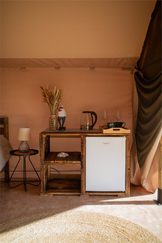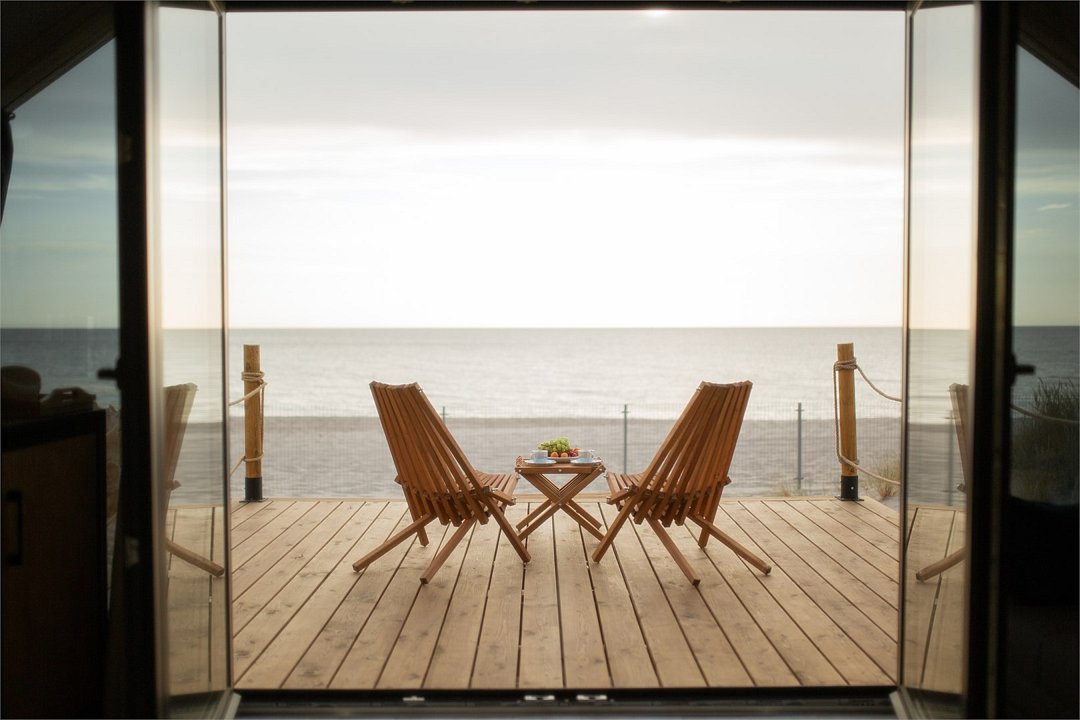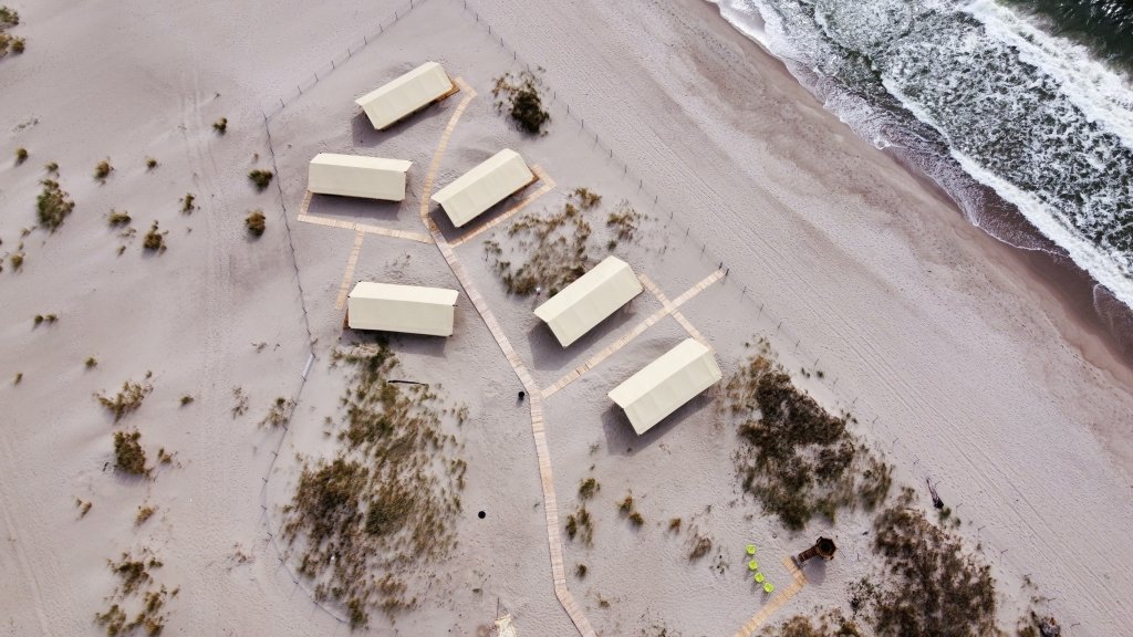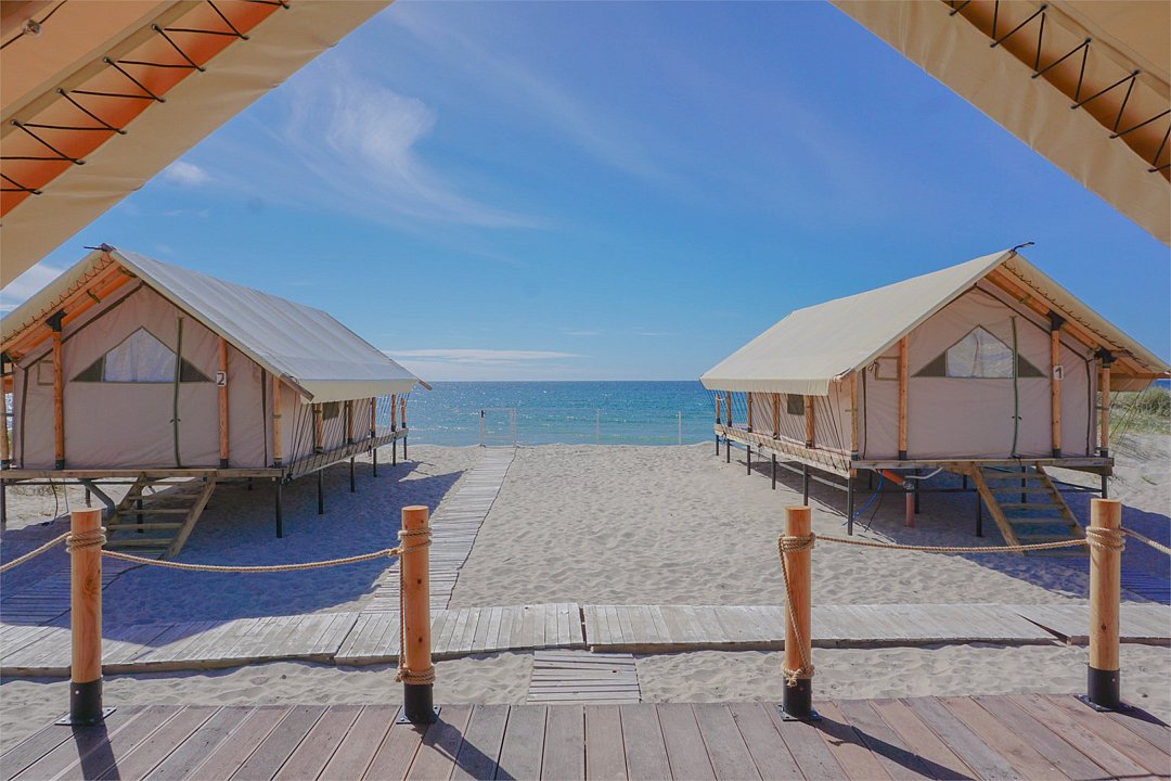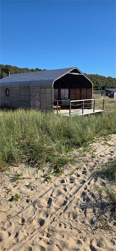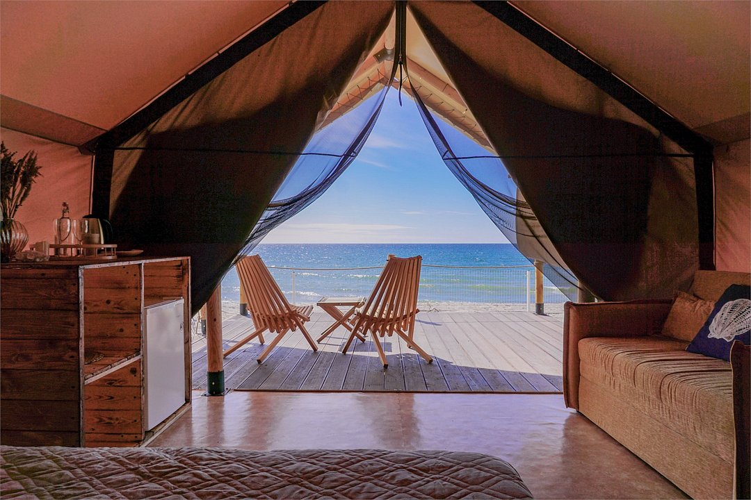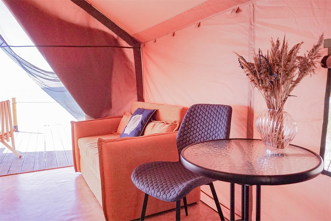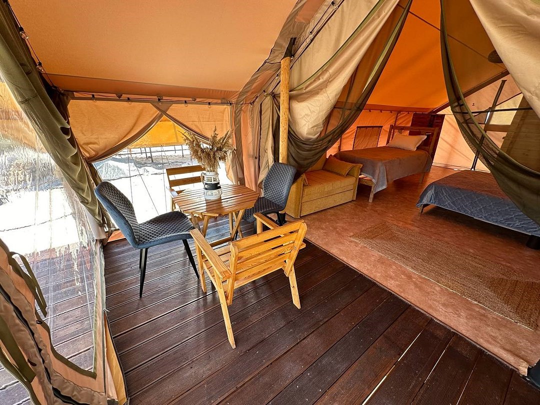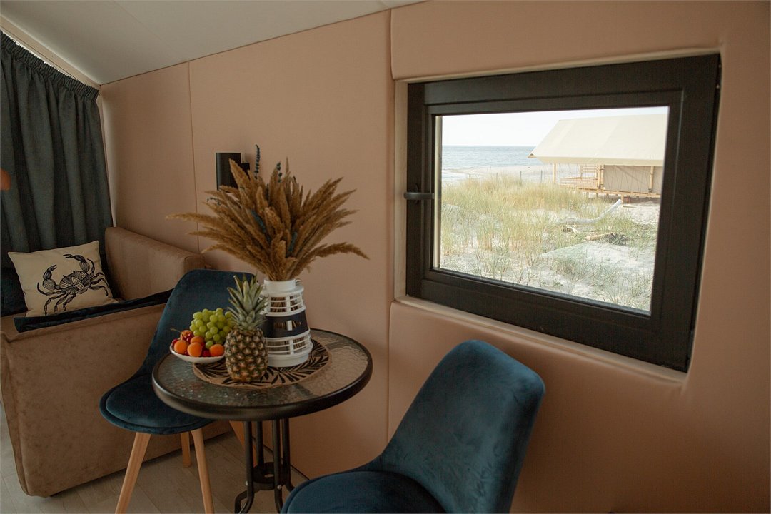 Уютный Тент-хаус на морском берегу с белоснежным песком и экологически чистой водой! Отлично подходит для романтического отдыха с любимым человеком или спокойного отдыха с семьей. Подходит для комфортного размещения до 3-х человек. Вас ждет безумно красивый вид на песчаные дюны и море с личной террасы, шум волн и незабываемые алые закаты балтийского побережья. Мы постарались сделать ваш отдых максимально комфортным, поэтому персональный душ и туалет со всем необходимым для личной гигиены находится в самом Тент-хаусе. Внутри Тент-хауса удобный продуманный интерьер, включающий в себя: • сундук с замком и вешалку для вещей; • большую двуспальную кровать; • диванчик с дополнительным спальным местом; • столик со стульями; • холодильник и чайник; • бутилированная питьевая вода, чай и кофе. Все это дополняется деревянной мебелью, размещенной на террасе и удобным гамаком, чтобы вы могли спокойно отдохнуть в любое время.Услуги и удобства