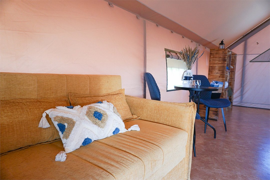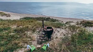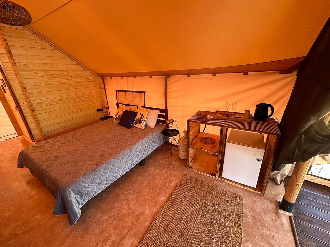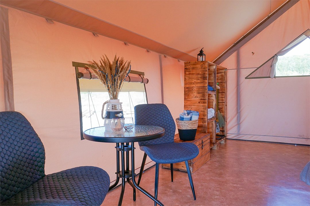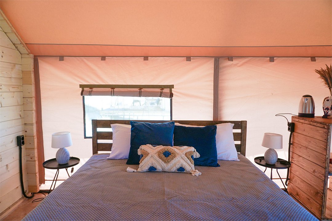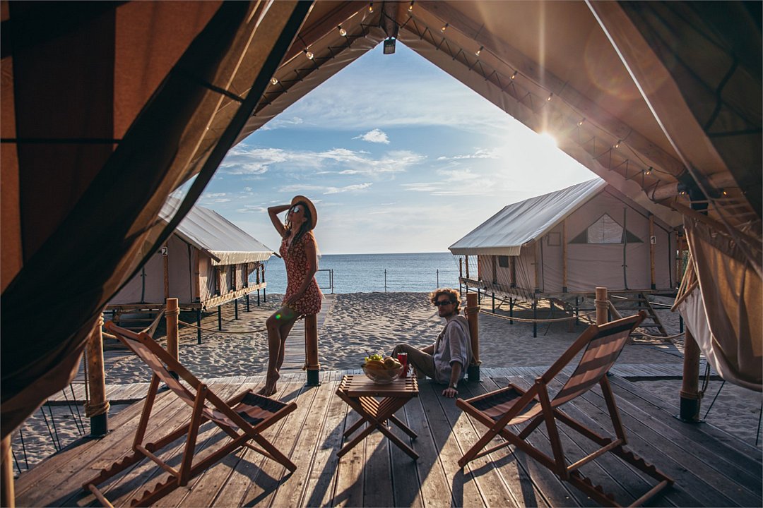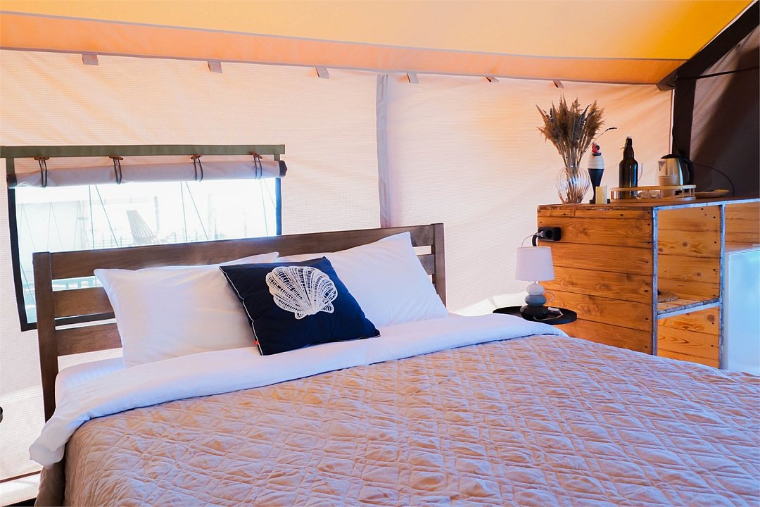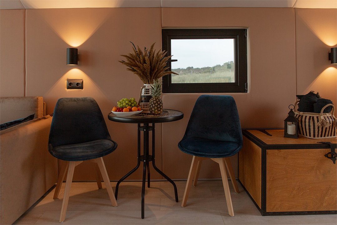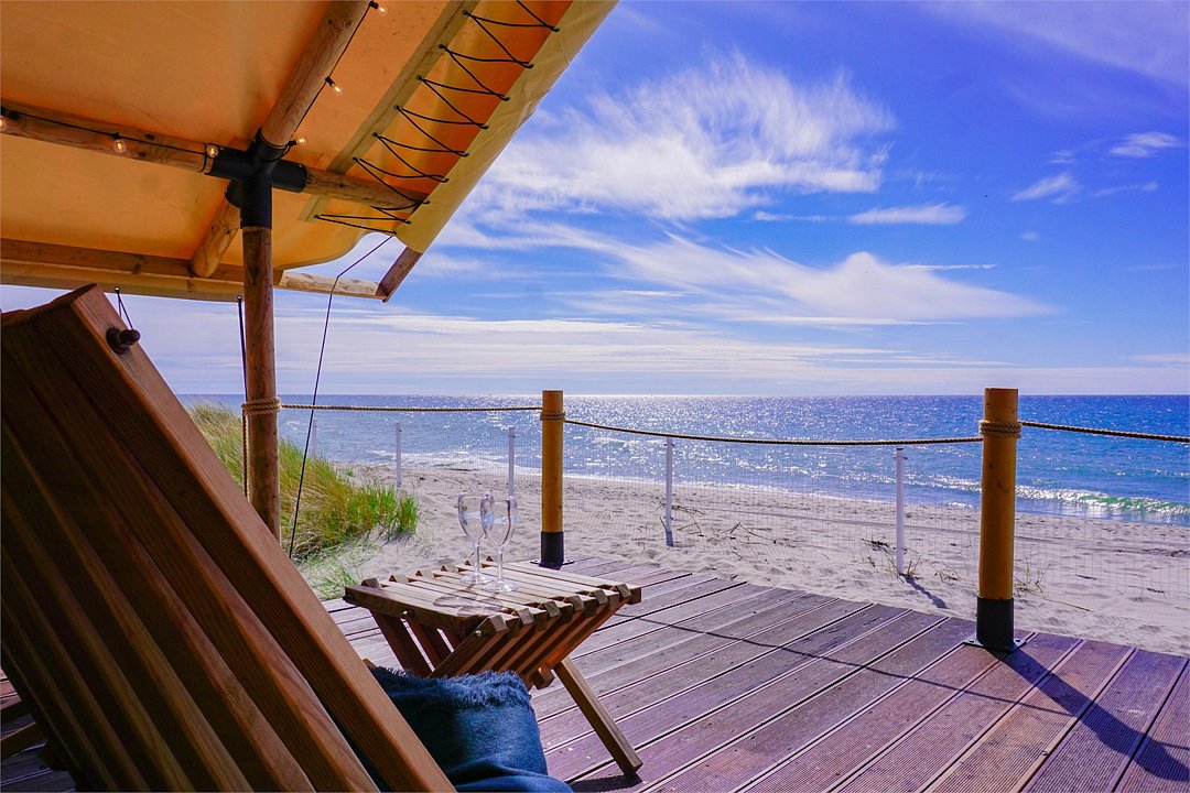 Уютный Тент-хаус на морском берегу с белоснежным песком и экологически чистой водой! Отлично подходит для романтического отдыха с любимым человеком или спокойного отдыха с семьей. Подходит для комфортного размещения до 3-х человек. Вас ждет безумно красивый вид на песчаные дюны и море с личной террасы, шум волн и незабываемые алые закаты балтийского побережья. Мы постарались сделать ваш отдых максимально комфортным, поэтому персональный душ и туалет со всем необходимым для личной гигиены находится в самом Тент-хаусе. Внутри Тент-хауса удобный продуманный интерьер, включающий в себя: • сундук с замком и вешалку для вещей; • большую двуспальную кровать; • диванчик с дополнительным спальным местом; • столик со стульями; • холодильник и чайник; • бутилированная питьевая вода, чай и кофе. Все это дополняется деревянной мебелью, размещенной на террасе и удобным гамаком, чтобы вы могли спокойно отдохнуть в любое время.Услуги и удобства