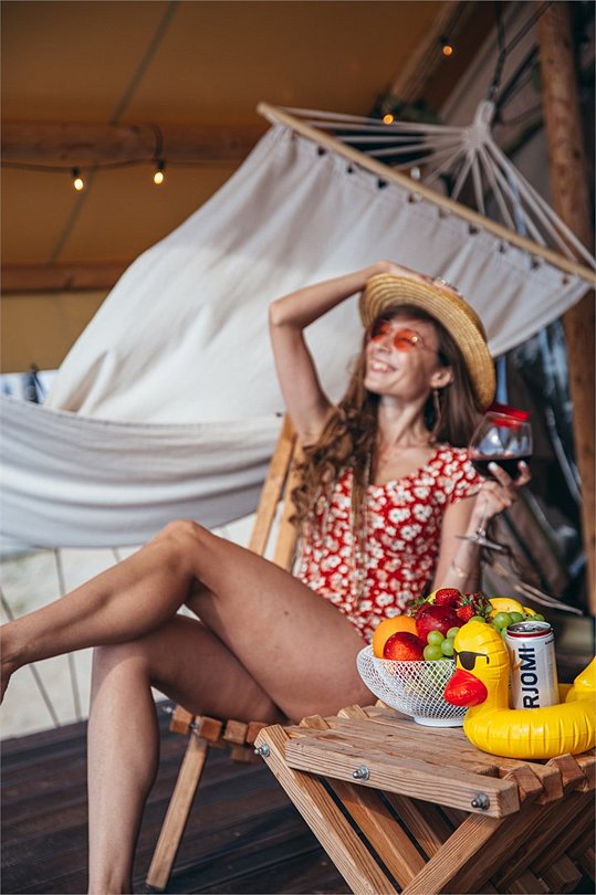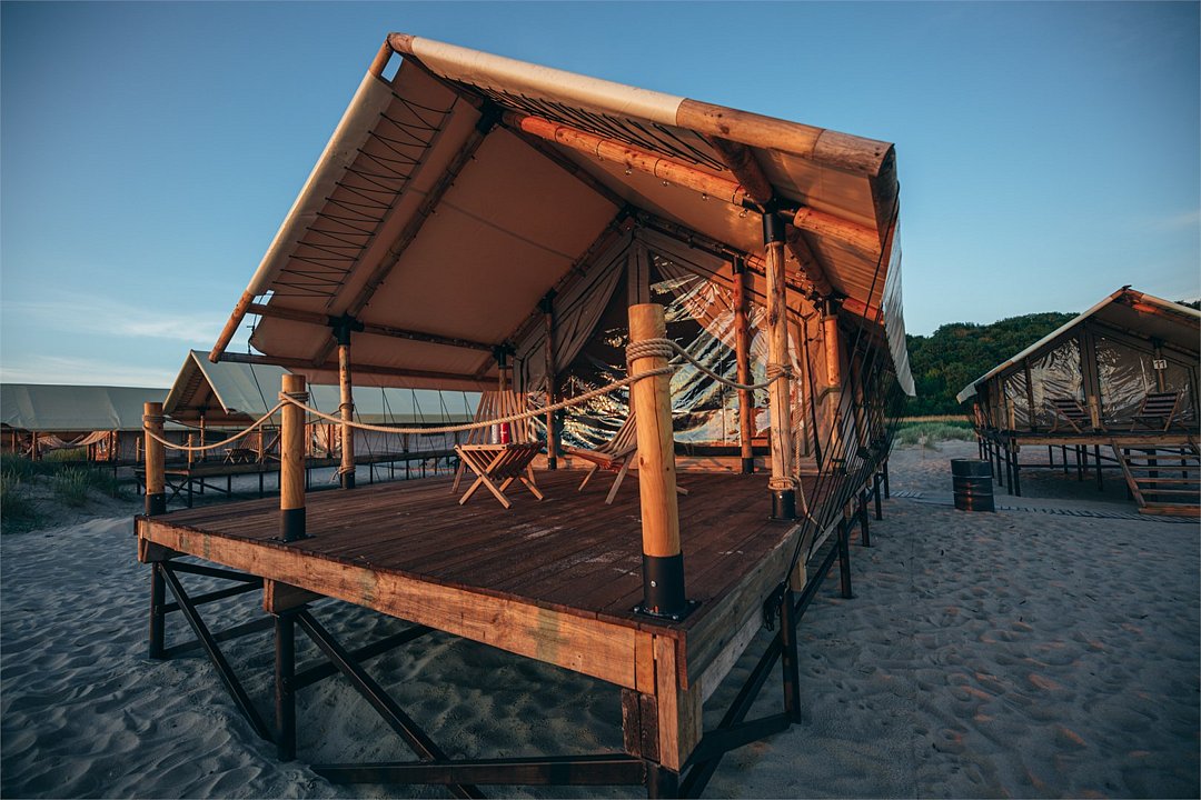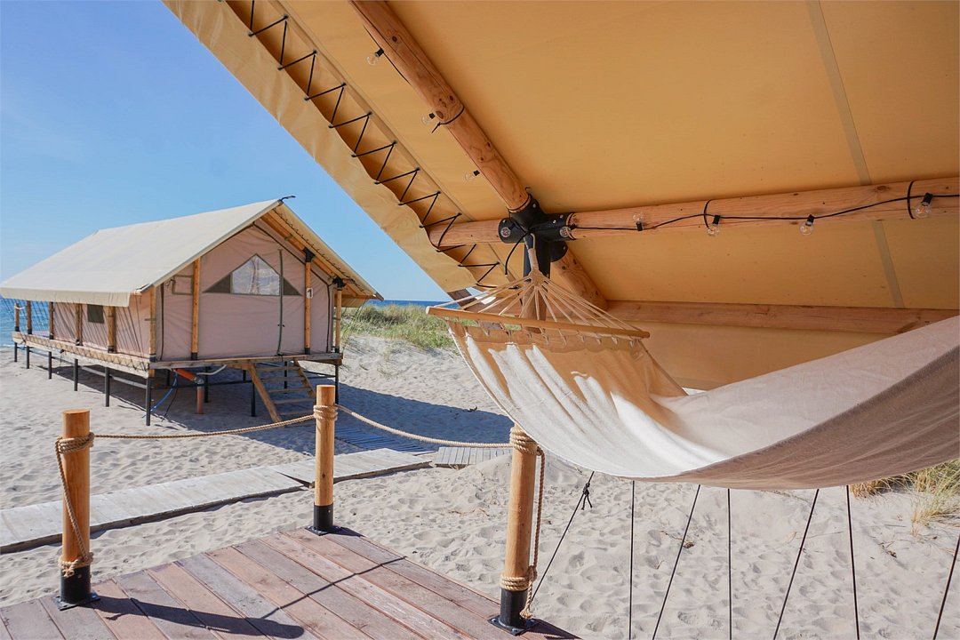 Уютный Тент-хаус в 50-ти метрах от воды на морском берегу с белоснежным песком и экологически чистой водой! Отлично подходит для романтического отдыха с любимым человеком или спокойного отдыха с семьей. Вас ждет безумно красивый вид на море с личной высокой террасы, песчаные дюны, шум волн и незабываемые алые закаты балтийского побережья. Мы постарались сделать ваш отдых максимально комфортным, поэтому персональный душ и туалет со всем необходимым для личной гигиены находится в самом Тент-хаусе. Внутри Тент-хауса удобный продуманный интерьер, включающий в себя: • сундук с замком и вешалку для вещей; • большую двуспальную кровать; • столик со стульями; • холодильник и чайник; • бутилированная питьевая вода, чай и кофе. Все это дополняется деревянной мебелью, размещенной на террасе и удобным гамаком, чтобы вы могли спокойно отдохнуть в любое время.Услуги и удобства
